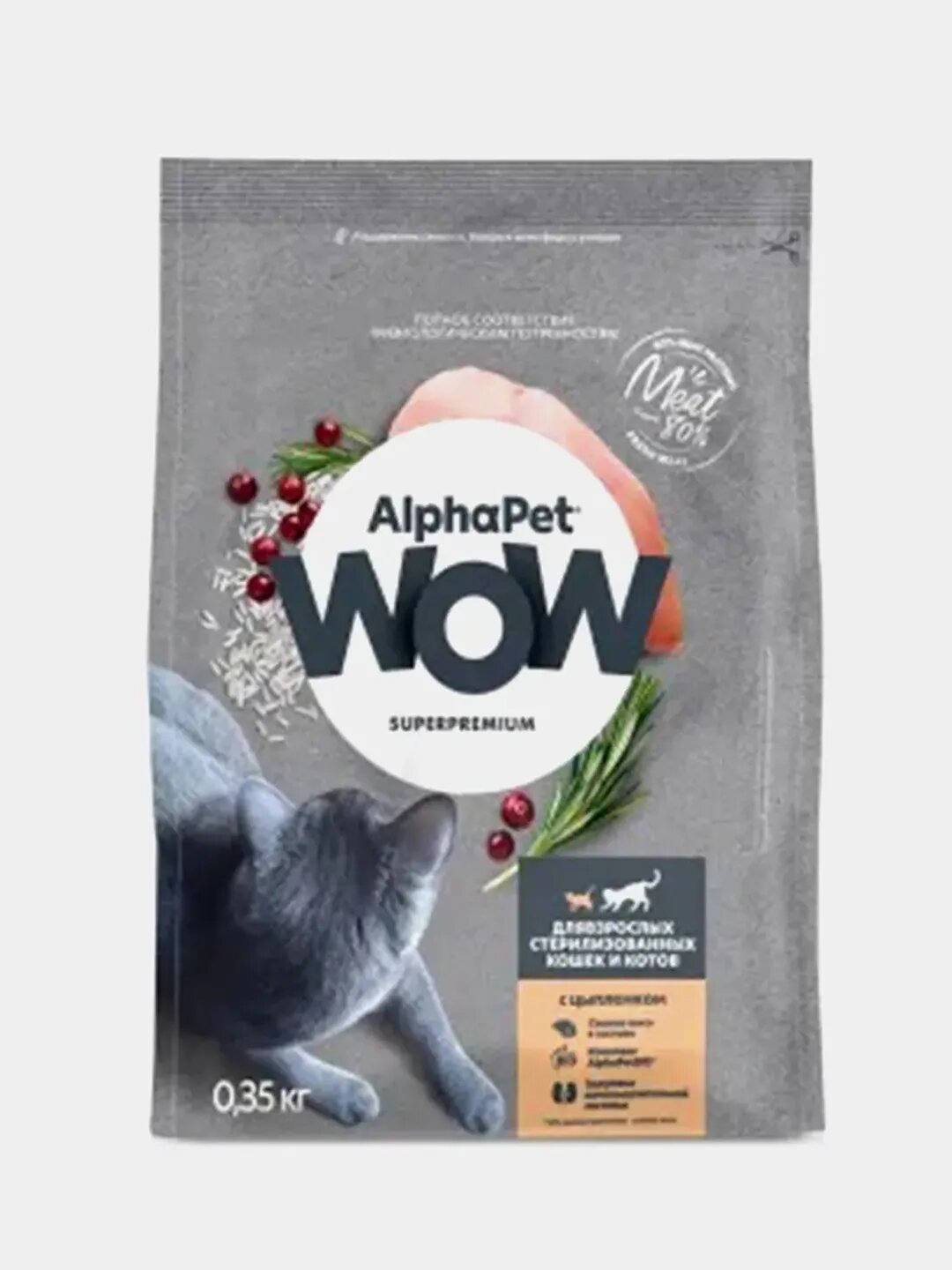 Купить Сухой корм AlphaPet WOW Superpremium для взрослых стерилизованных кошек, c цыпленком, 350г