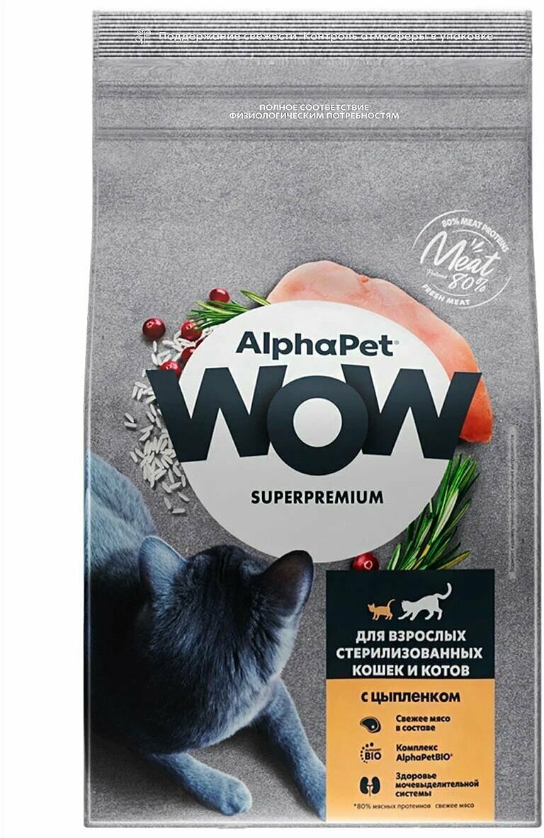 Корм AlphaPet WOW Superpremium для стерилизованных кошек и котов, c цыпленком,1.5 кг