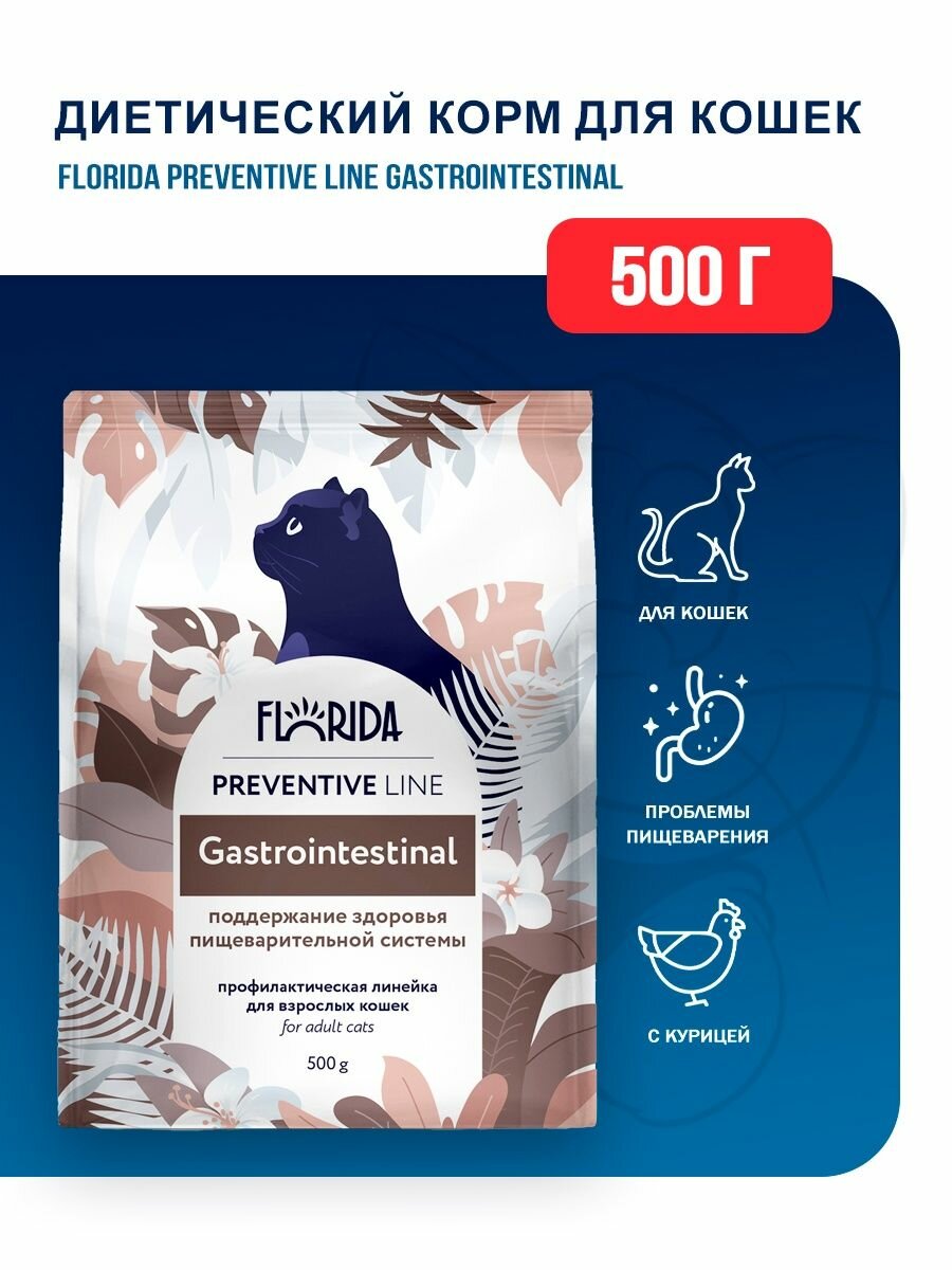 FLORIDA Preventive Line Gastrointestinal сухой корм для кошек "Поддержание здоровья пищеварительной системы", 0,5кг
