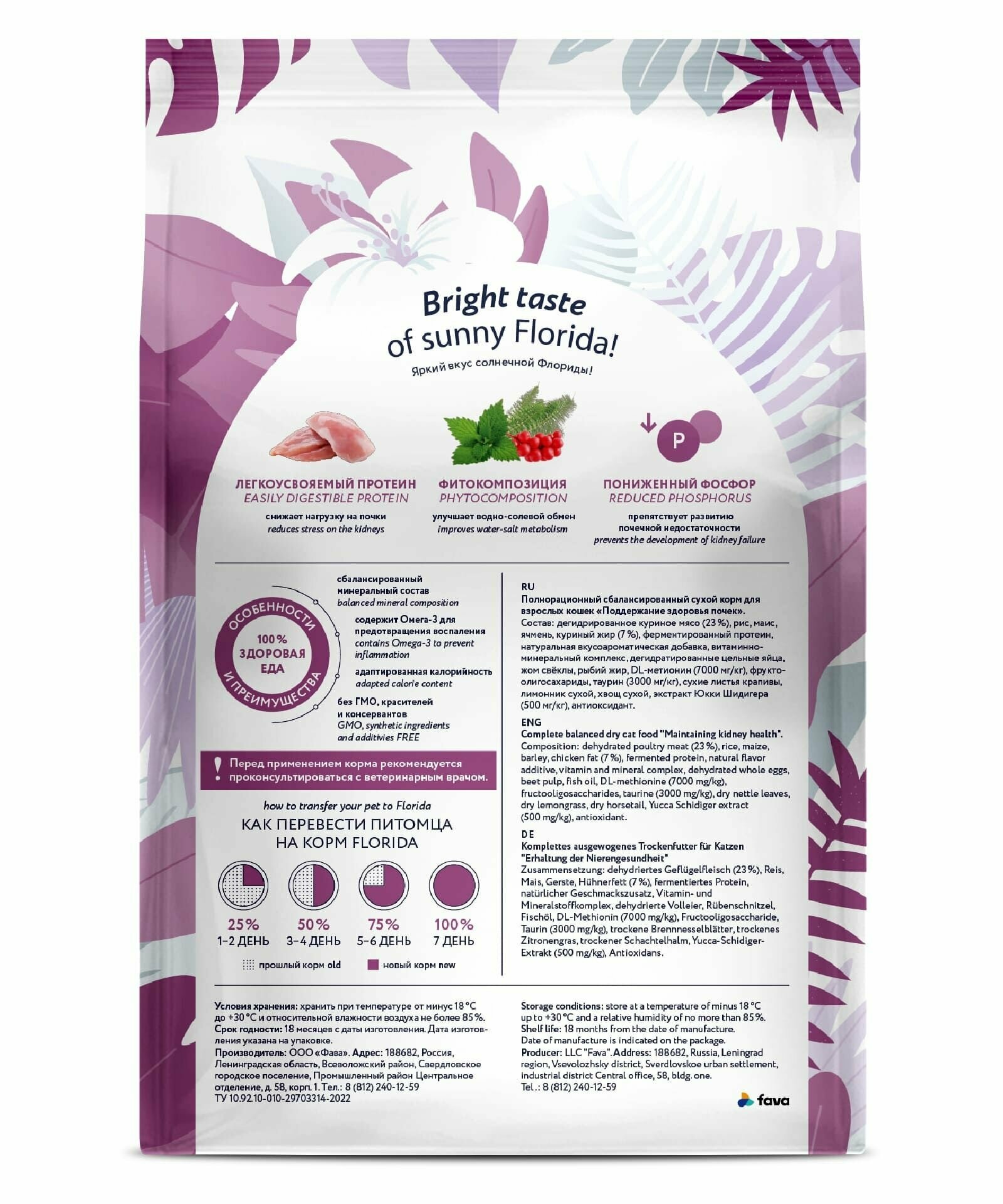 Сухой корм FLORIDA для кошек профилактическая линия, Preventive Line renal, поддержание здоровья почек, с курицей и фитокомпозицией, 1,5 кг.