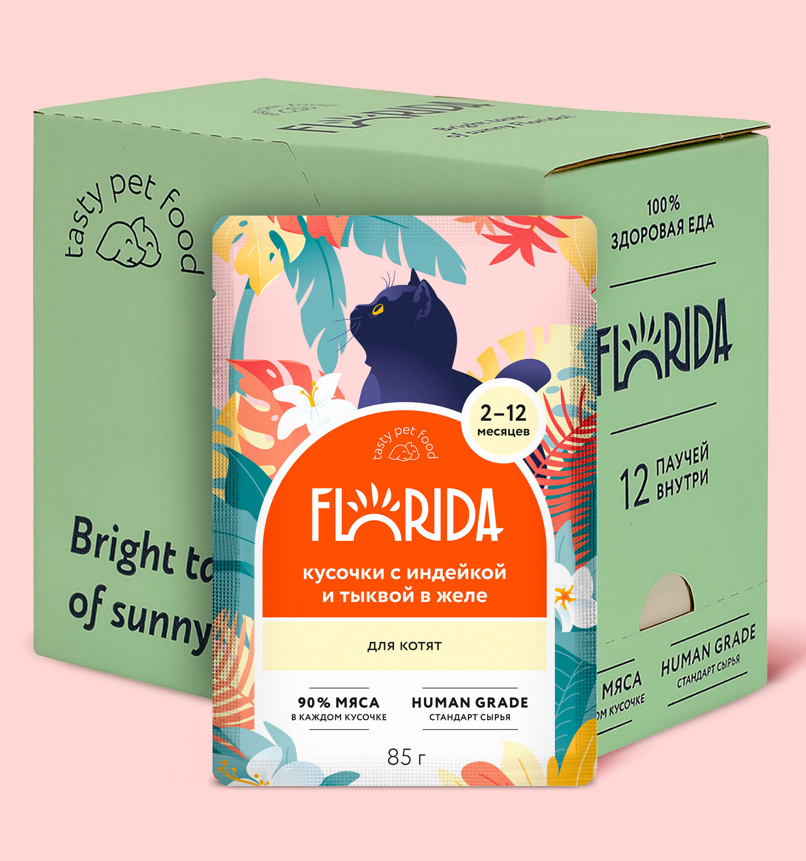 Florida паучи для котят с индейкой и тыквой, кусочки в желе - 85 г x 12 шт