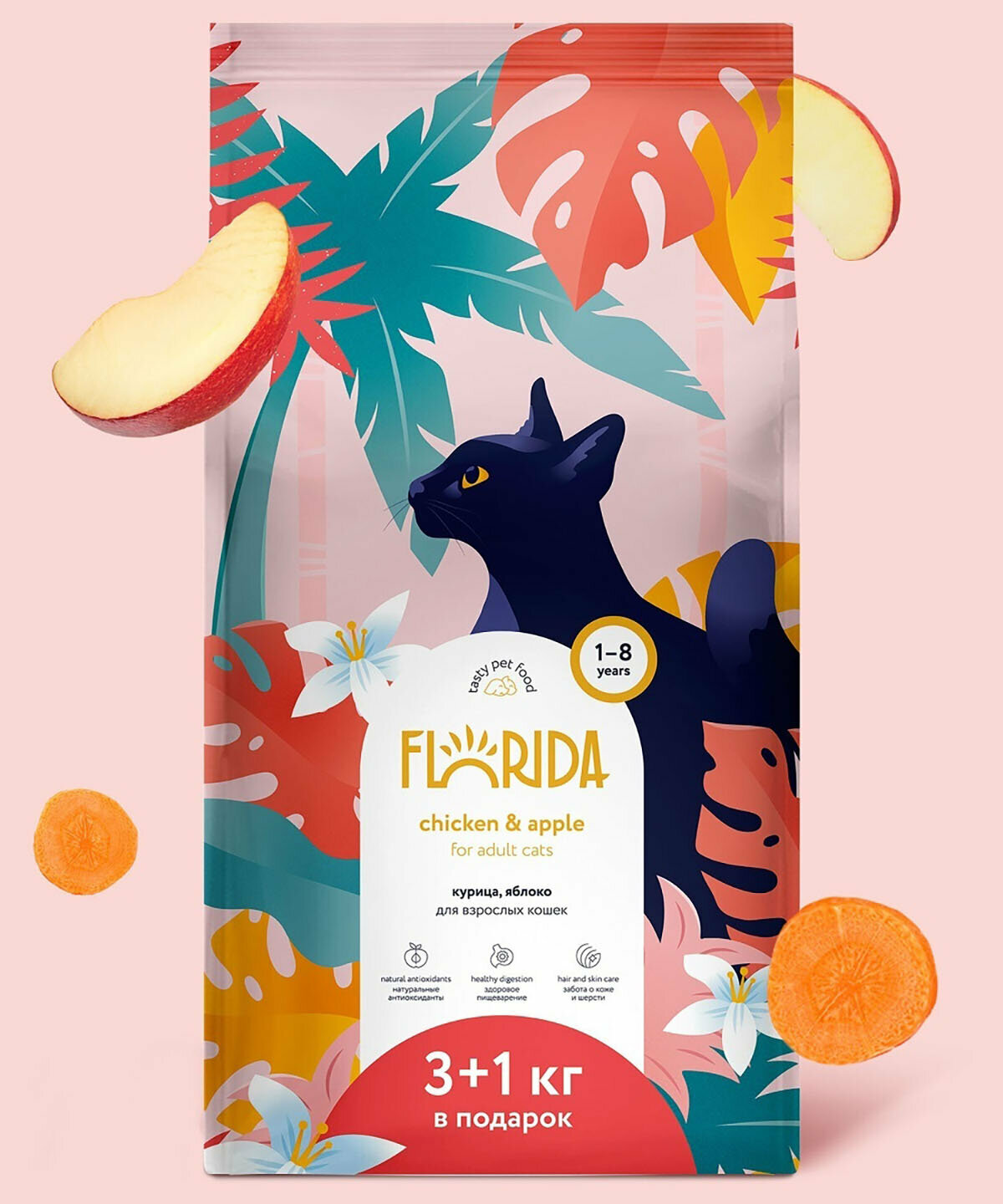 FLORIDA для взрослых кошек с курицей и яблоком (3 + 1 кг)