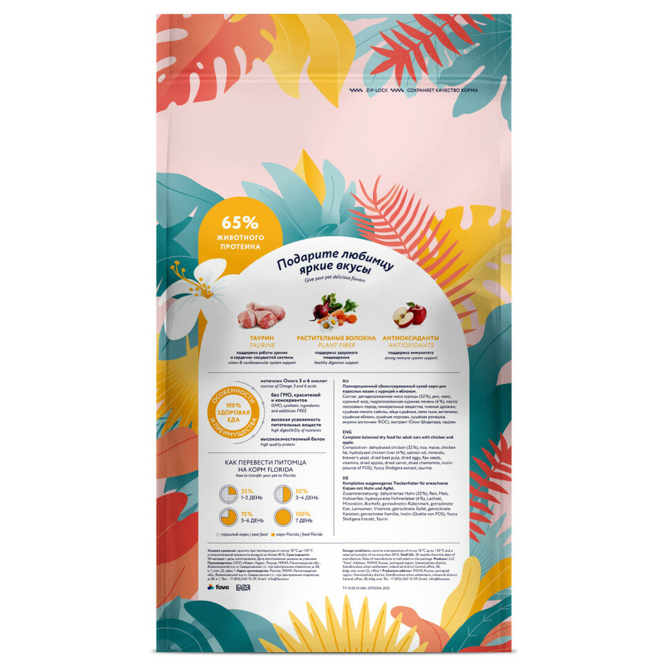 FLORIDA Сухой корм для взрослых кошек с Курицей и Яблоком