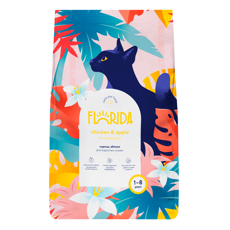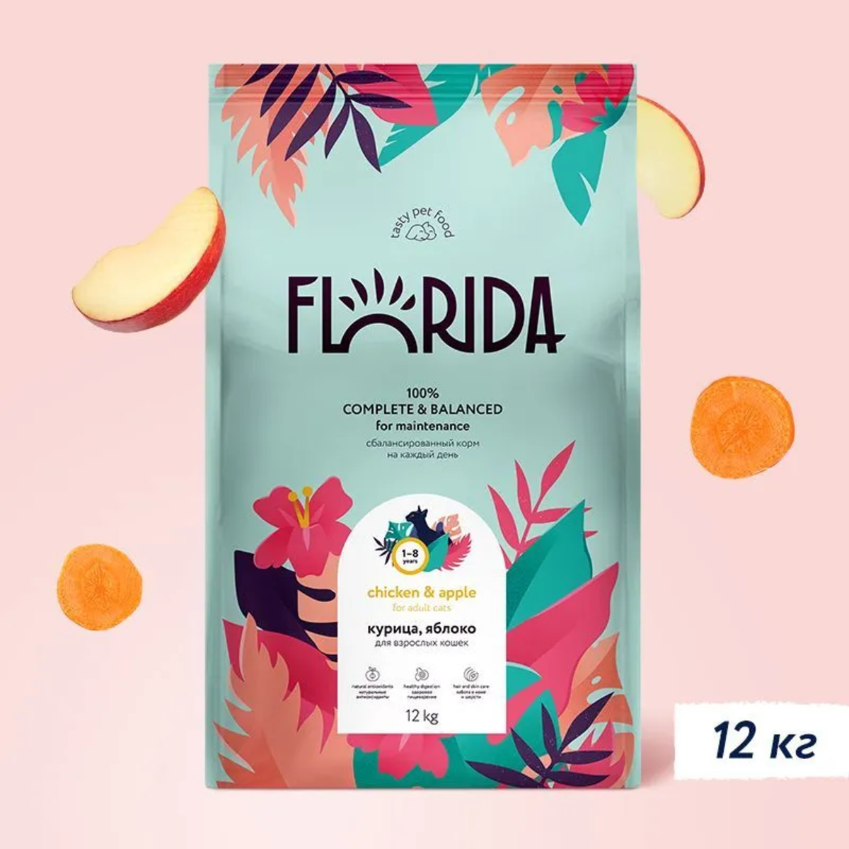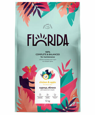 FLORIDA Сухой корм для взрослых кошек с Курицей и Яблоком