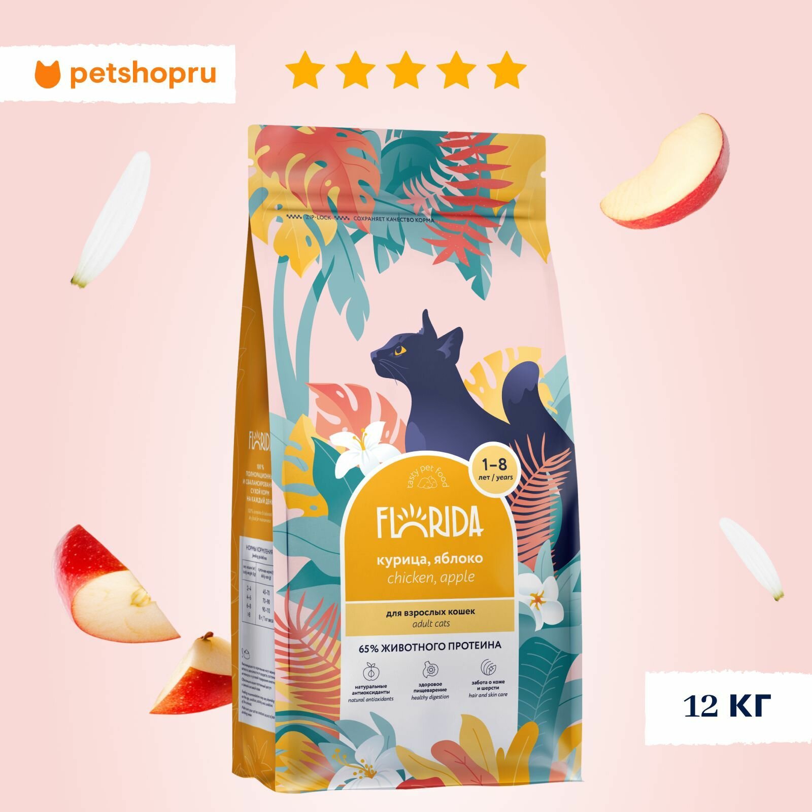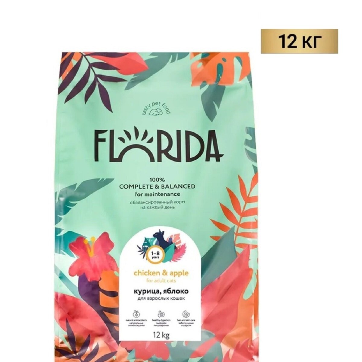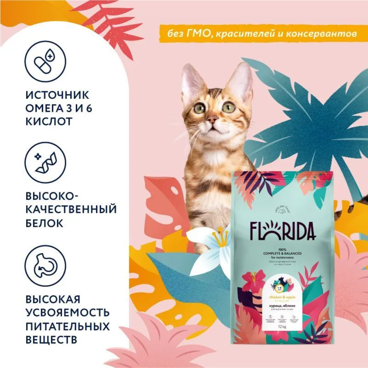 Купить FLORIDA Сухой корм для взрослых кошек, с курицей и яблоком, Adult Chicken, 12 кг