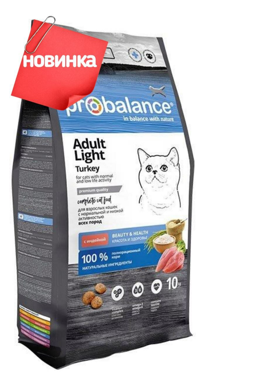 Корм сухой ProBalance Adult Light Turkey, для кошек с нормальной и низкой активностью, с индейкой 10 кг. интересное: