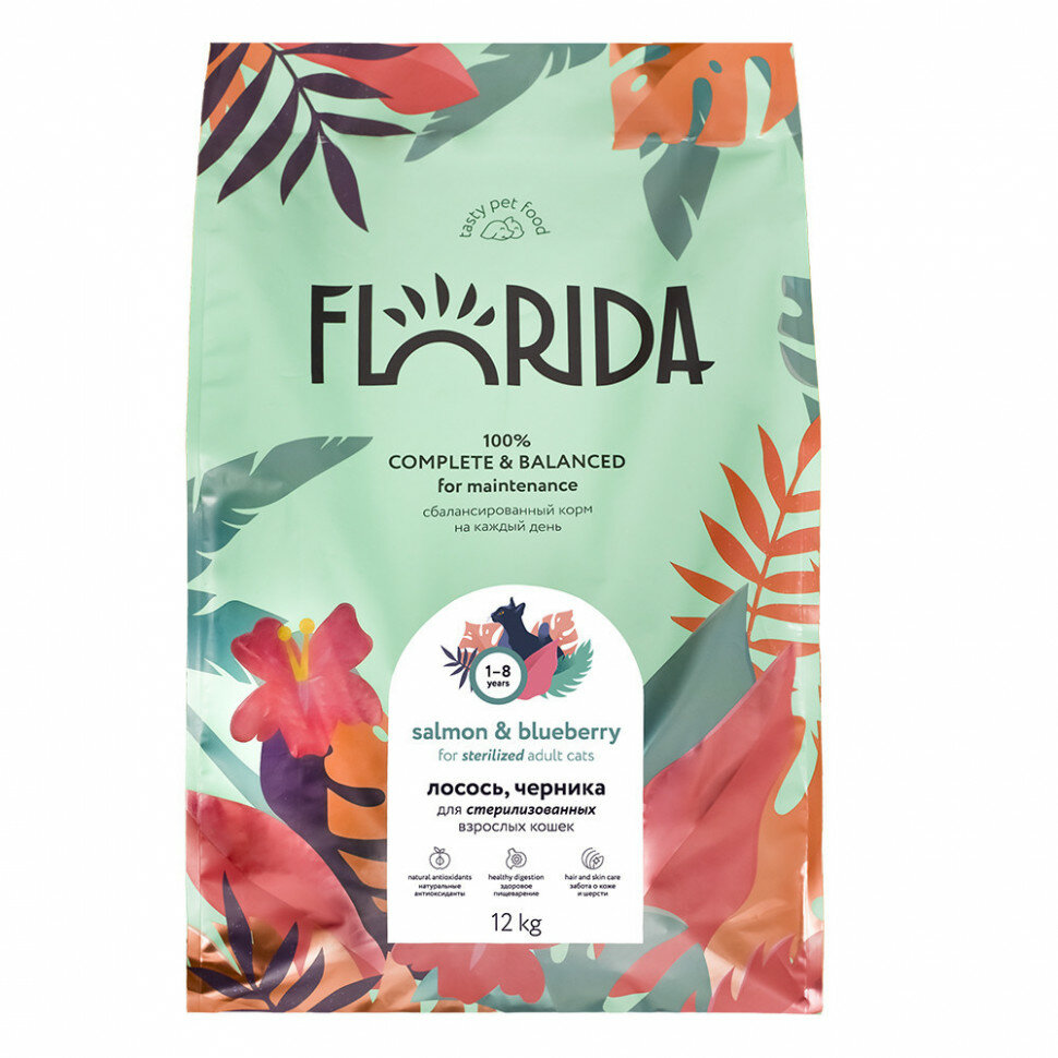 СохранитьFLORIDA сухой корм для взрослых стерилизованных кошек с лососем и черникой (12 кг) интересное: