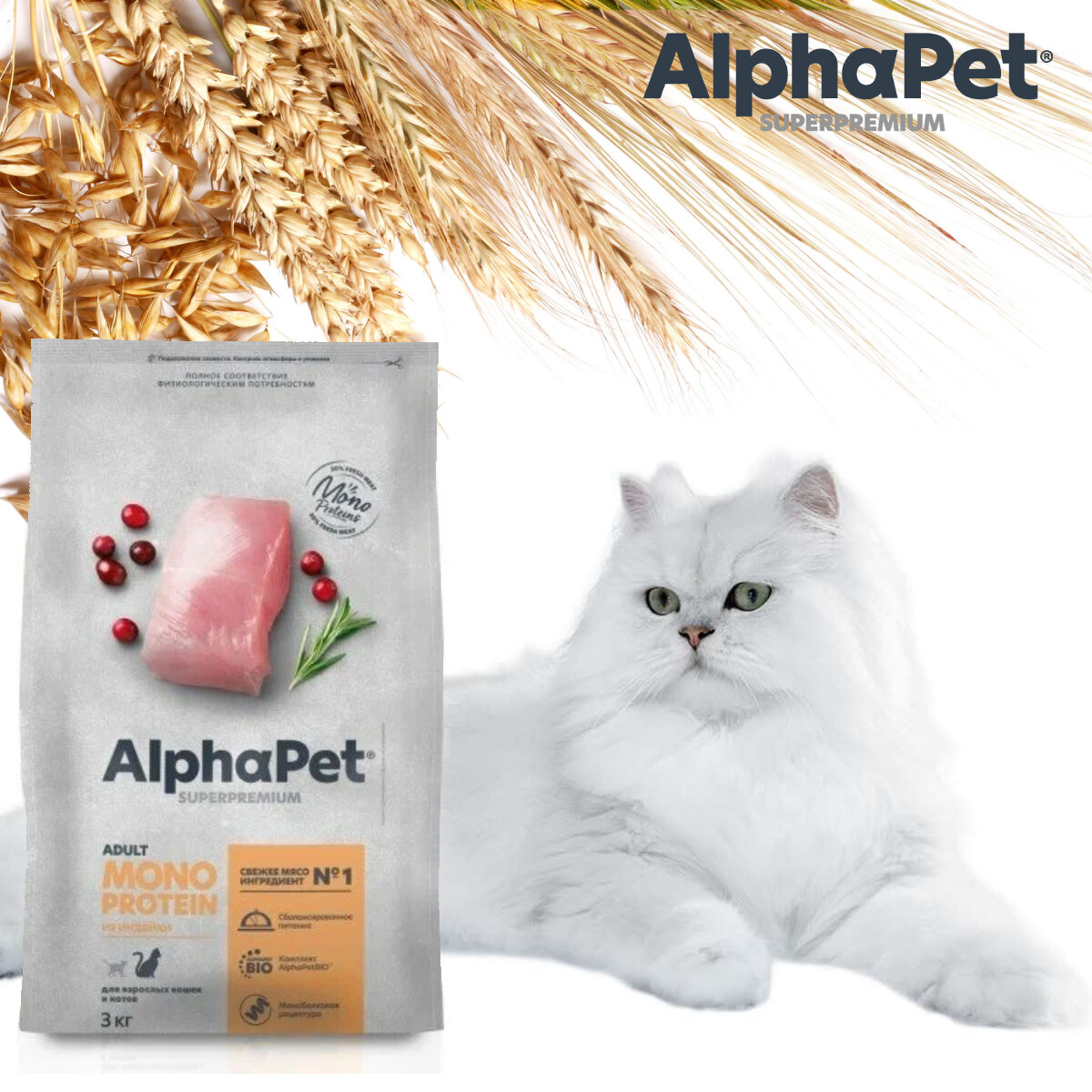 Сухой корм для взрослых кошек AlphaPet Monoprotein из индейки, 3кг