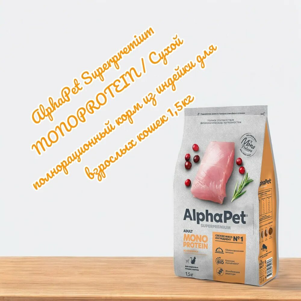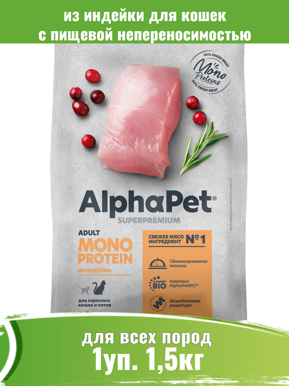 Купить ALPHAPET MONOPROTEIN Adult Корм сух.индейка д/кошек 1,5кг