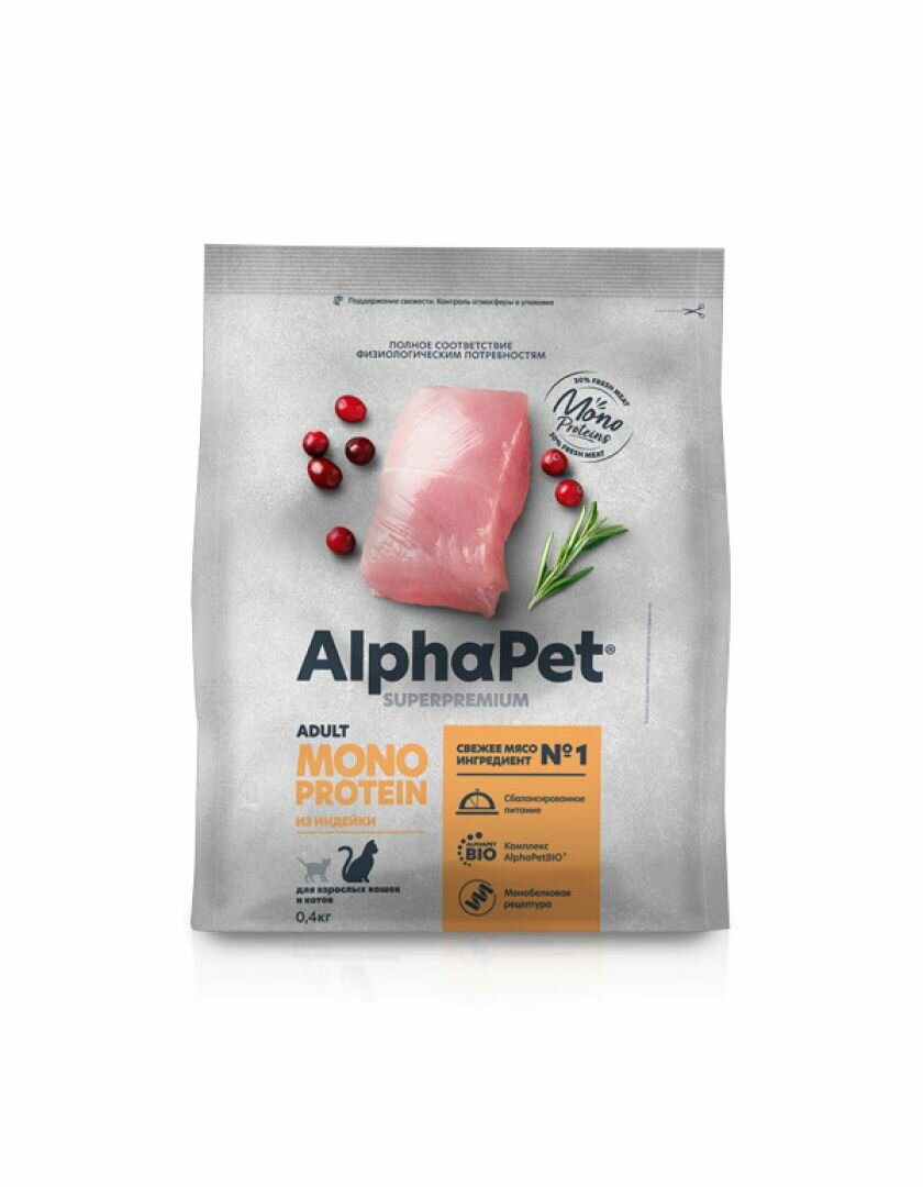 AlphaPet Monoprotein Superpremium Сухой корм для взрослых кошек, с индейкой, 400 гр.