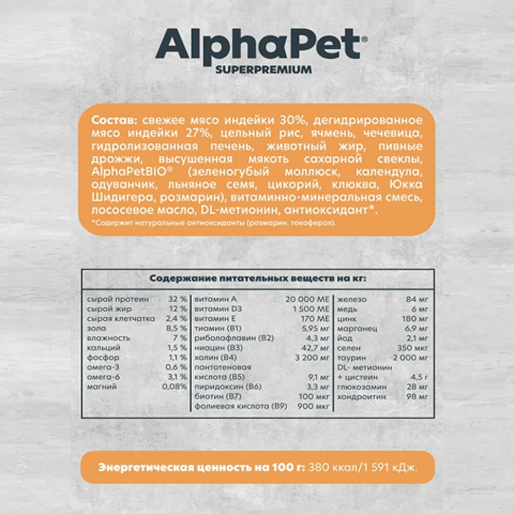 Сухой корм для кошек AlphaPet Superpremium с индейкой, 1,5 кг