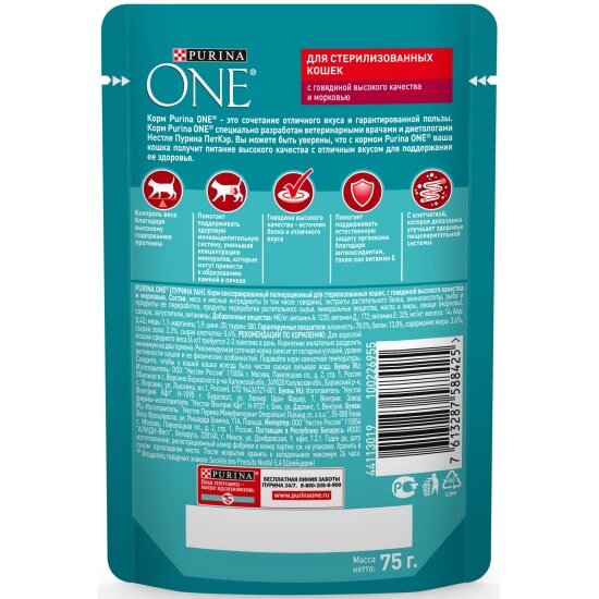 Купить Влажный корм Purina ONE для стерилизованных кошек, с говядиной и морковью 75 г