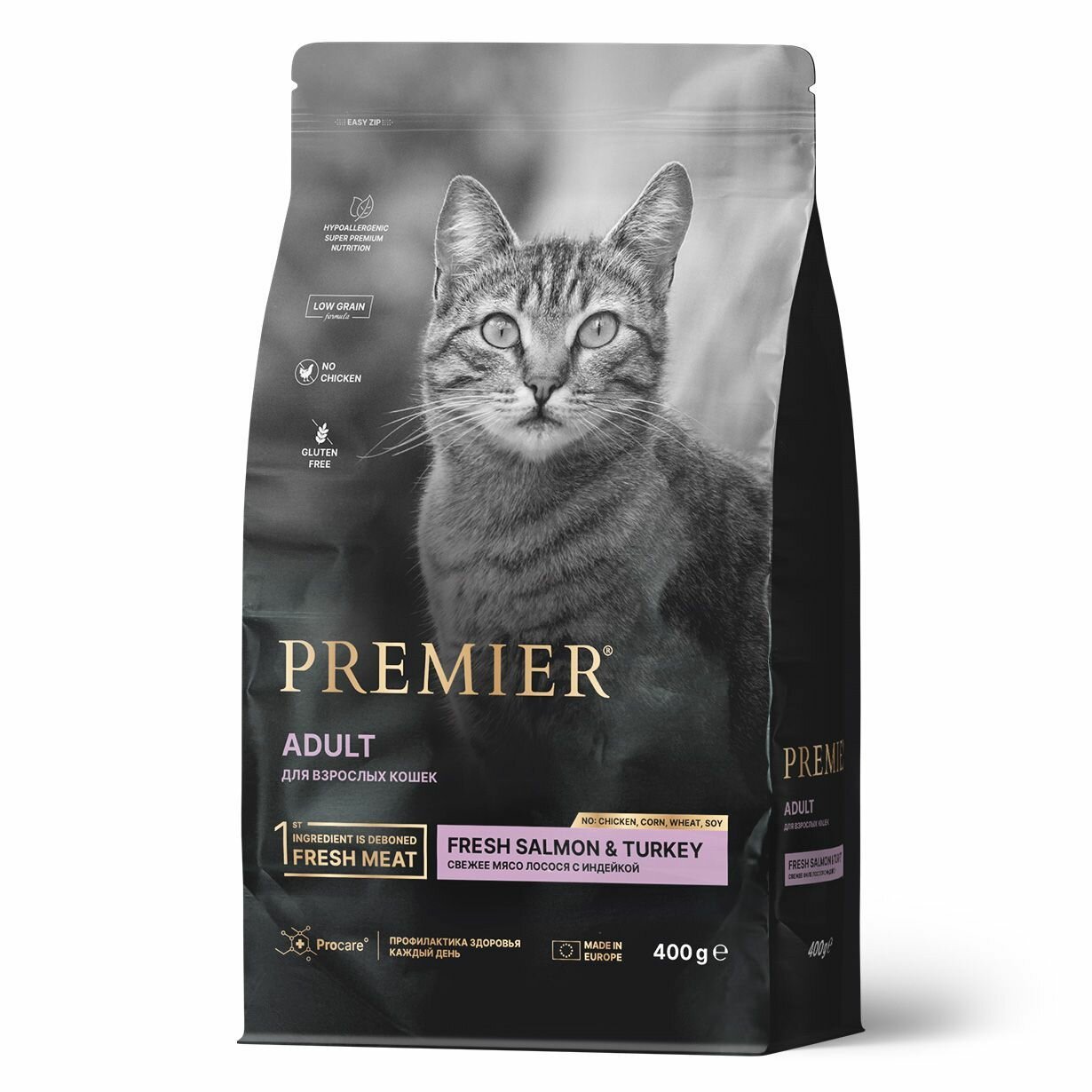 Купить Сухой корм Premier Cat Salmon&Turkey ADULT Свежее филе лосося с индейкой для кошек, 400 г * 2 шт