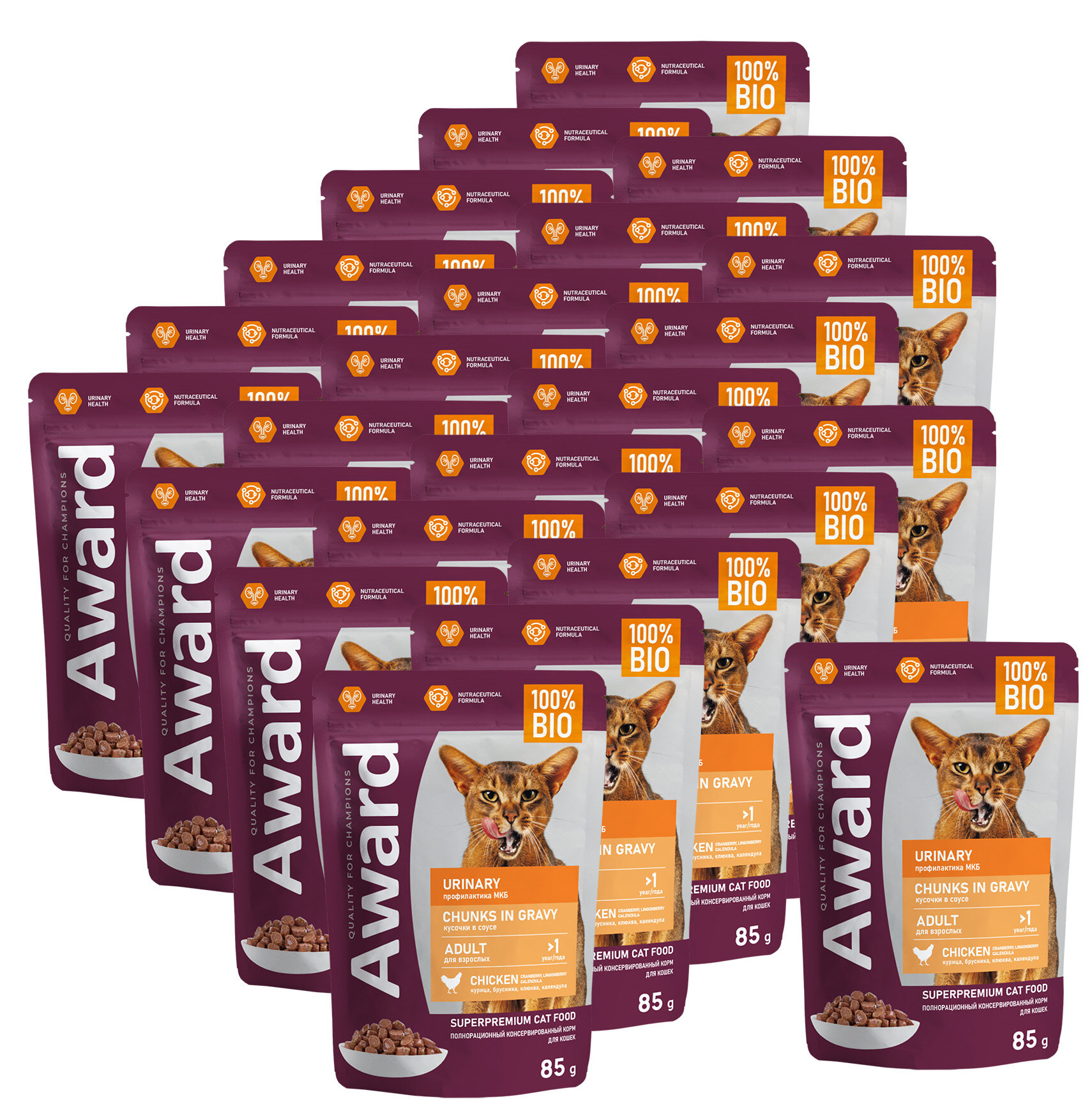 Влажный корм AWARD Urinary для профилактики мочекаменной болезни у взрослых кошек кусочки в соусе с курицей 85 г 12 шт.