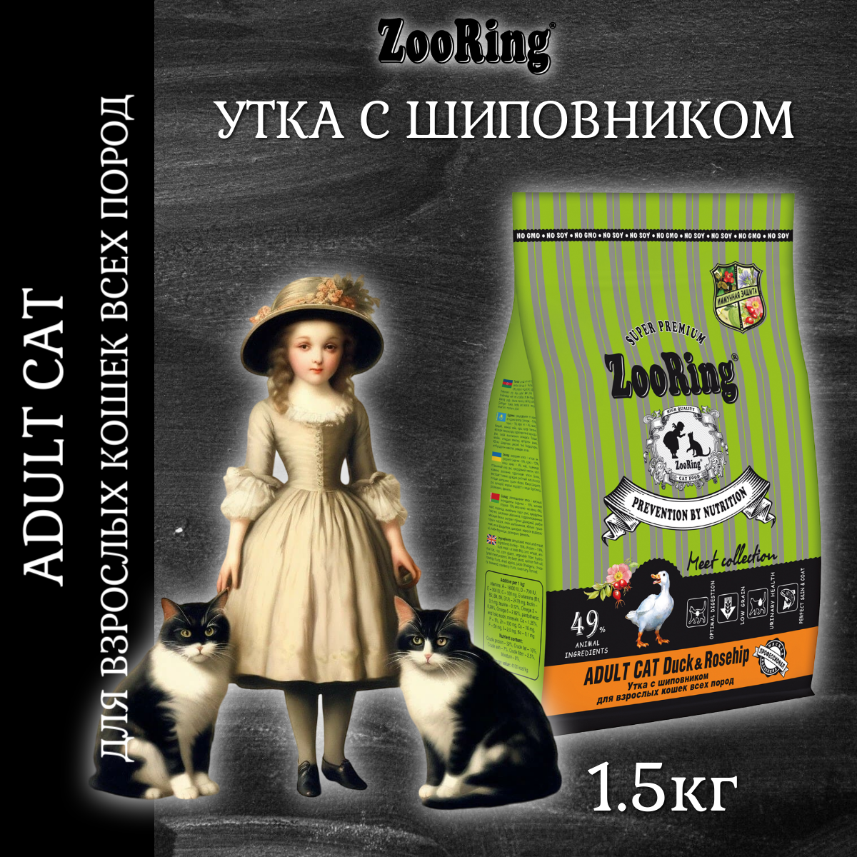 СохранитьСухой корм ZooRing ADULT CAT утка с шиповником для кошек, 1,5кг интересное: