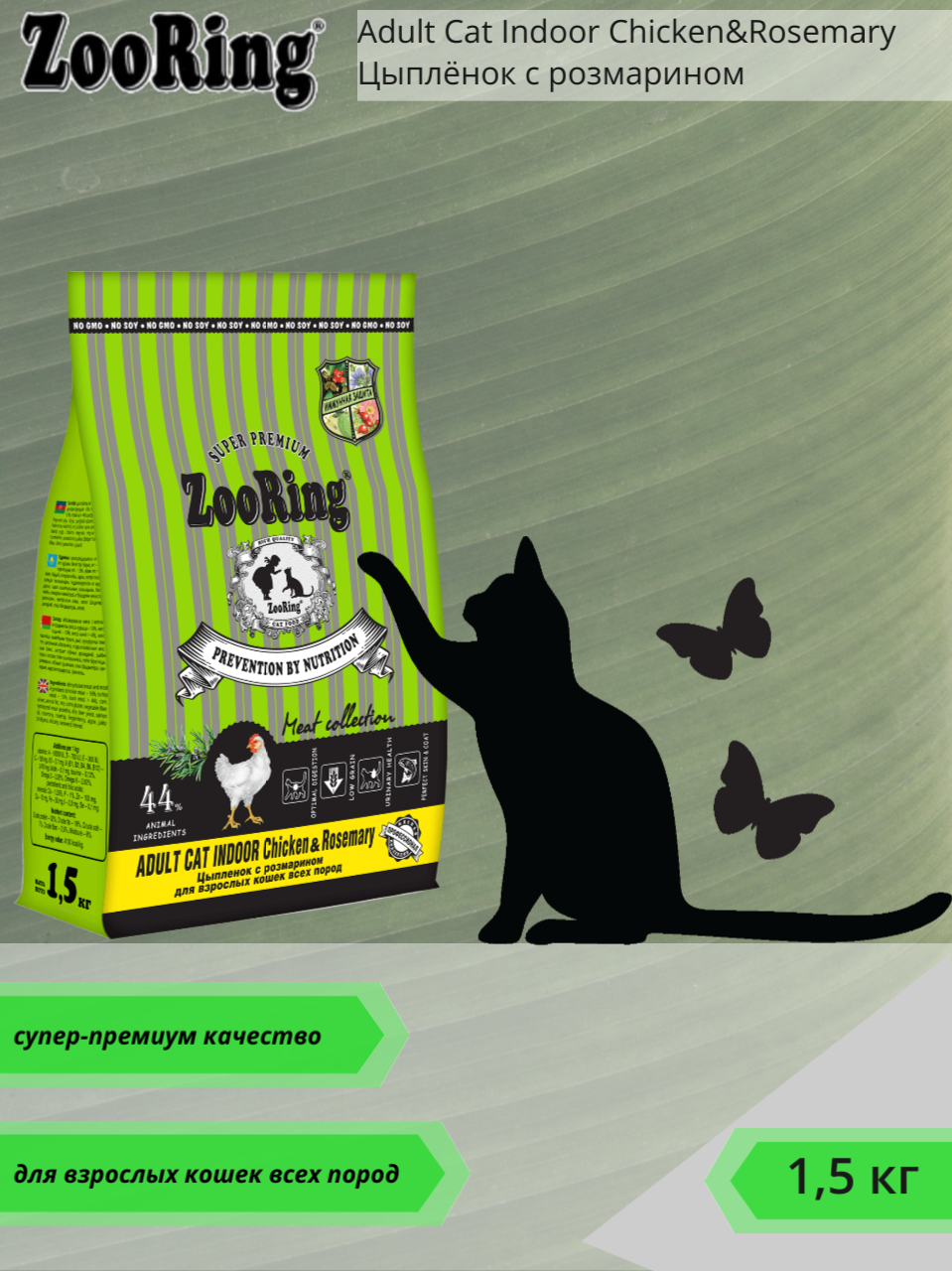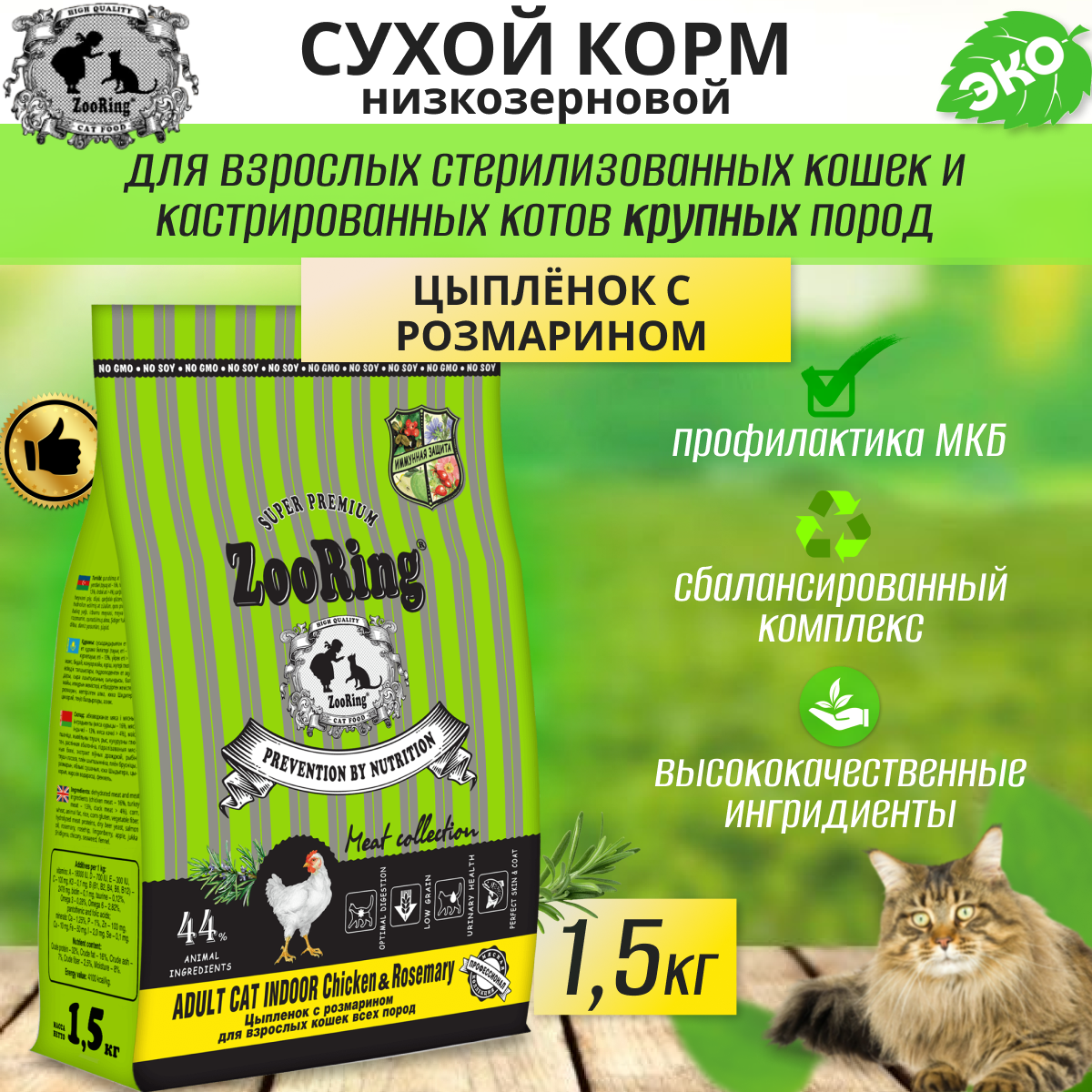 Купить Сухой корм ZooRing ADULT CAT INDOOR цыпленок с розмарином для кошек, 1,5кг