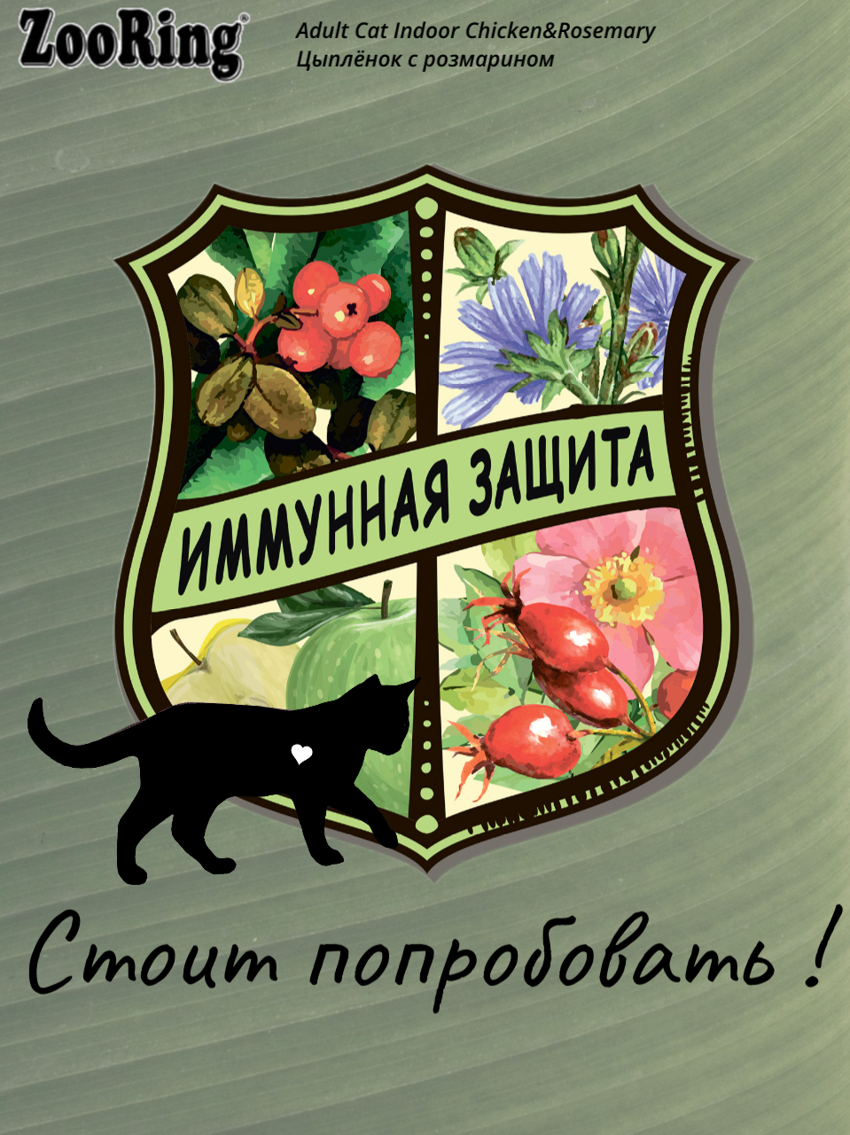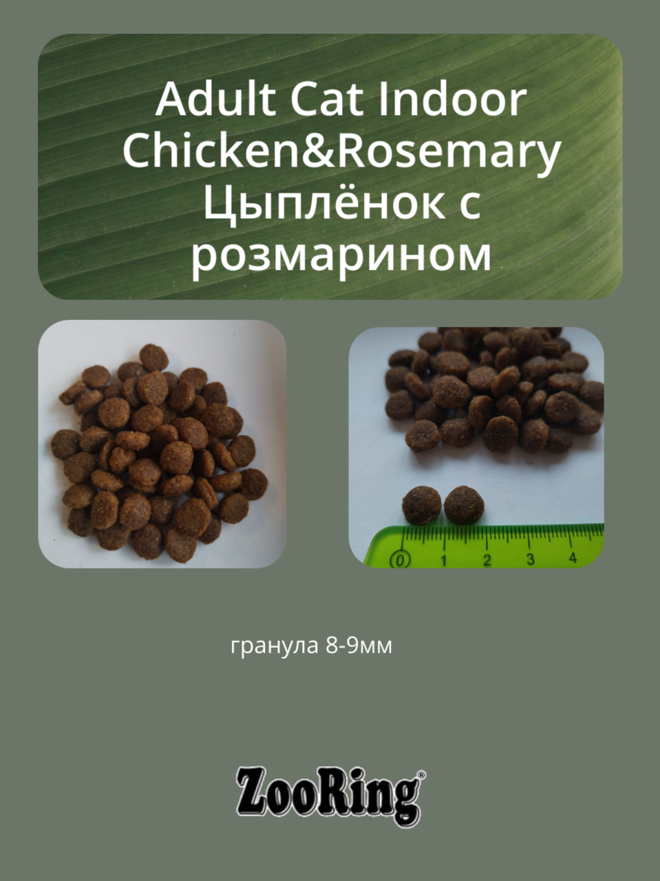 СохранитьСухой корм Zooring ADULT CAT INDOOR CHICKEN&rosemary (Цыпленок с розмарином) взрослых кошек всех пород 1упх10 кг интересное: