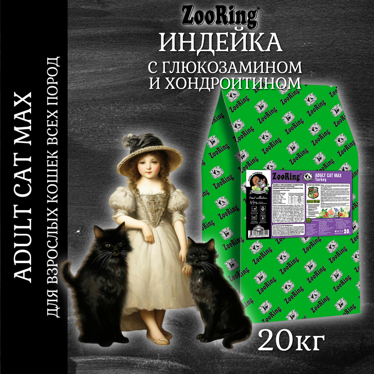 ZooRing Корм сухой для кошек Adult Cat Max Turkey Индейка с глюкозамином и хондроитином, 20кг