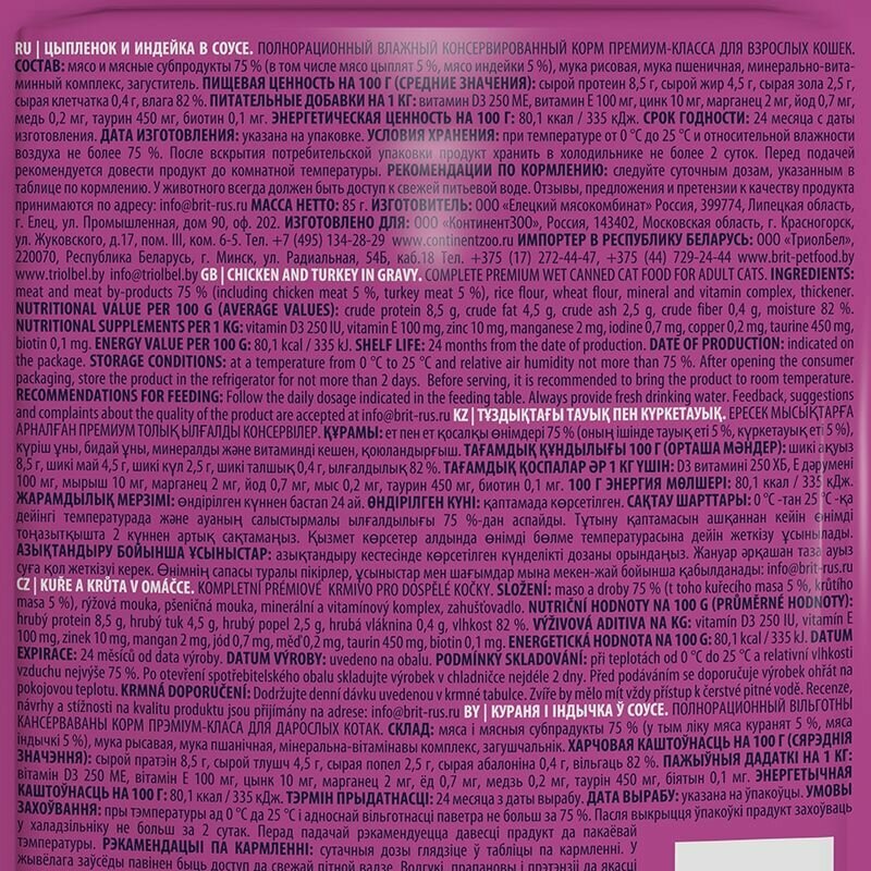 СохранитьBrit Premium пауч для кошек (кусочки в соусе) Курица и индейка, 85 г. упаковка 14 шт интересное: