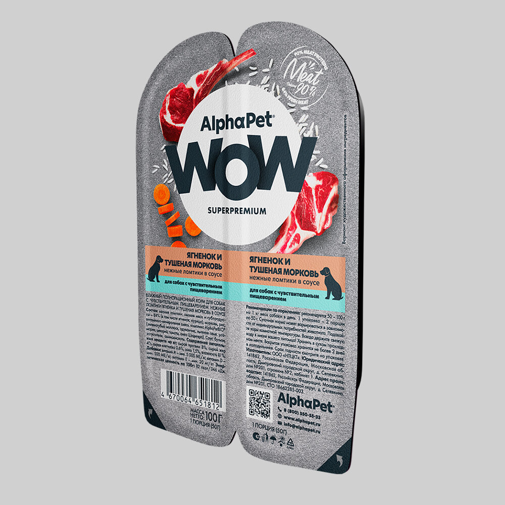 Влажный корм д/с AlphaPet WOW Superpremium Ягненок и тушеная морковь нежные ломтики в соусе 100г (в упаковке 15 блистеров)