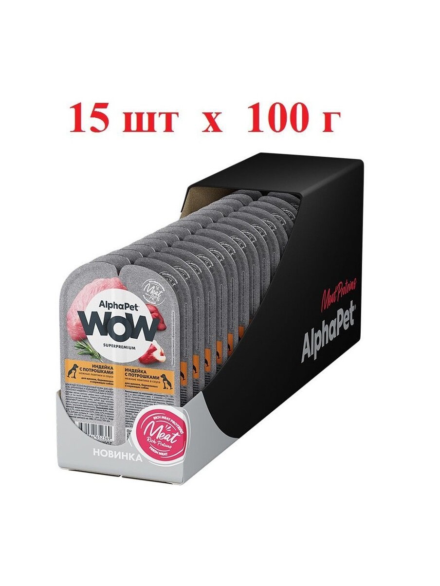 Влажный корм AlphaPet WOW Superpremium индейка с потрошками нежные ломтики в соусе для щенков, беременных и кормящих собак, 100г х 15 шт