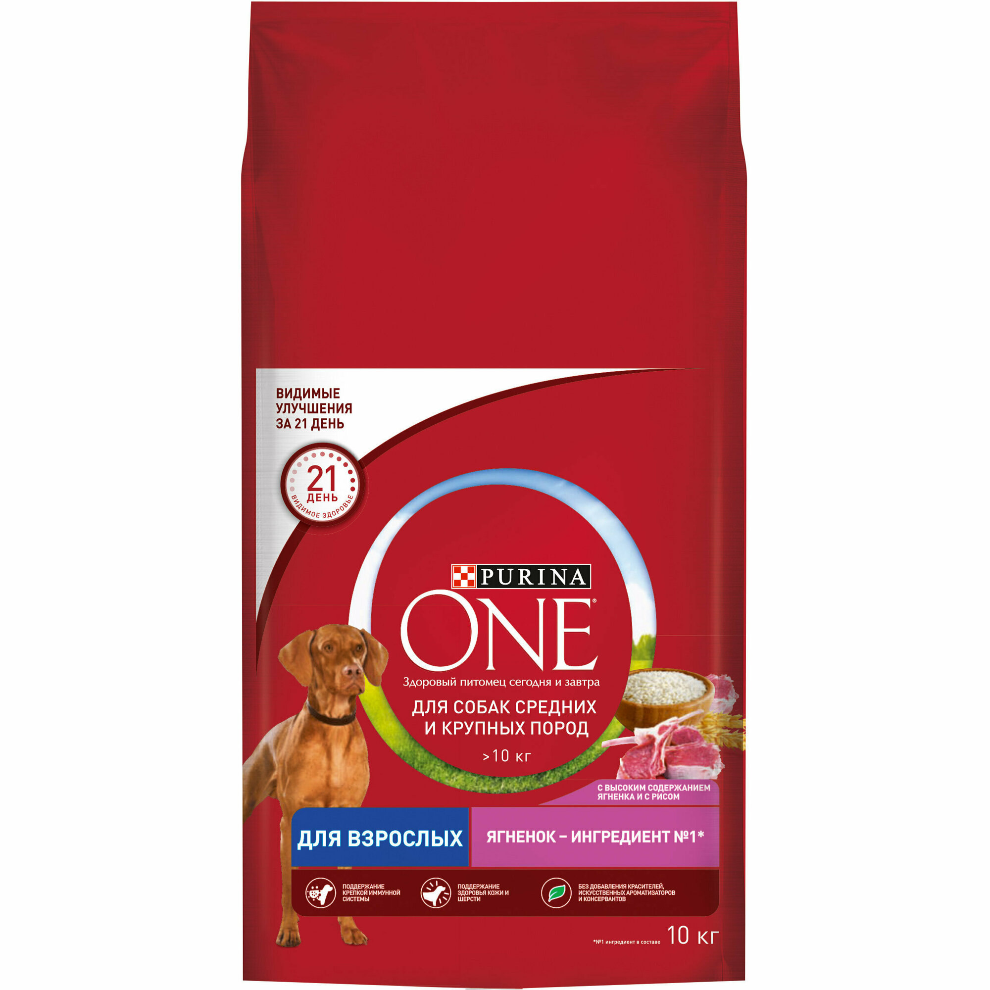 Купить Purina One Корм для взрослых собак средних и крупных пород с ягненком, 10кг 10 кг
