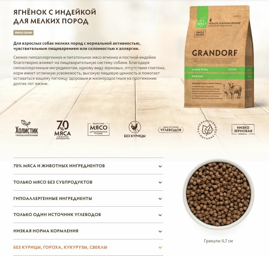 GRANDORF DOG Lamb&Turkey MINI (ягнёнок с индейкой для собак мини пород) (1 кг)