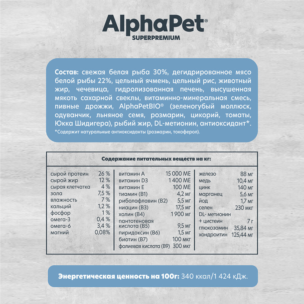 Сухой корм для собак средних и крупных пород, AlphaPet Superpremium Monoprotein, белая рыба, 12 кг