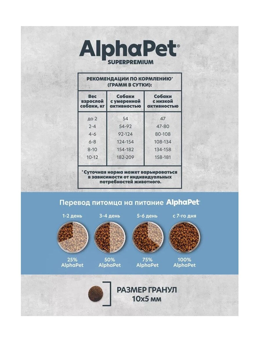 AlphaPet Superpremium - Сухой корм для взрослых собак крупных пород, с Говядиной и Потрошками (12 кг)