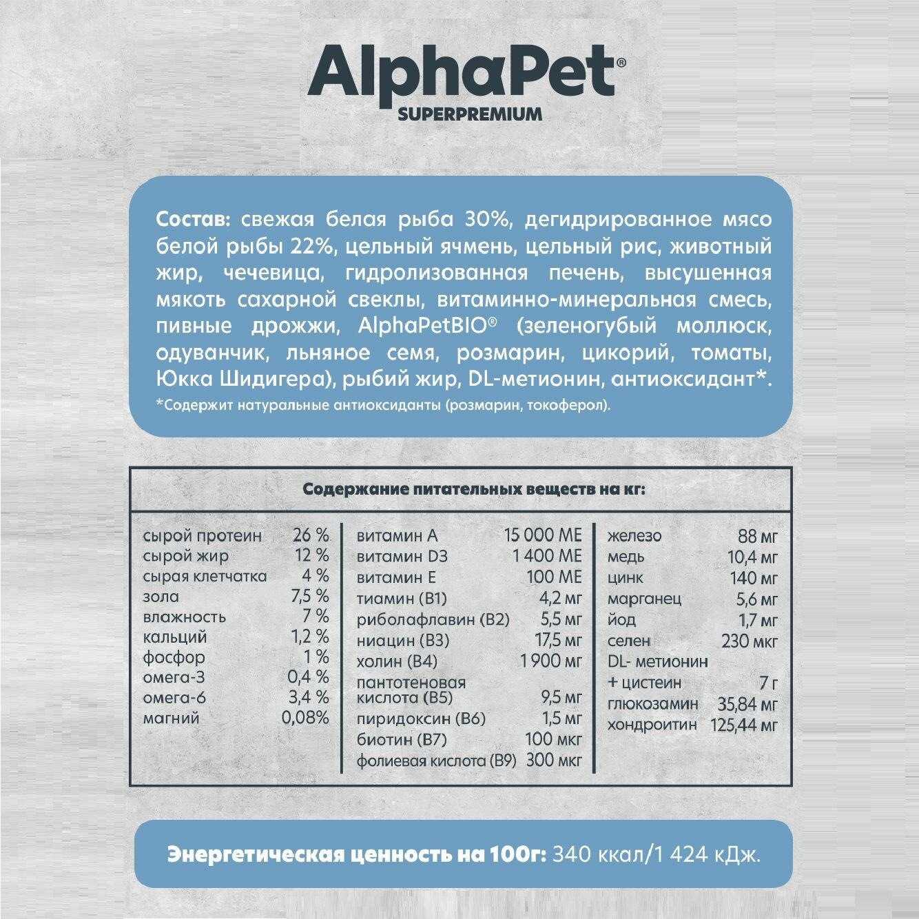 Сухой корм для собак средних и крупных пород, AlphaPet Superpremium Monoprotein, белая рыба, 12 кг