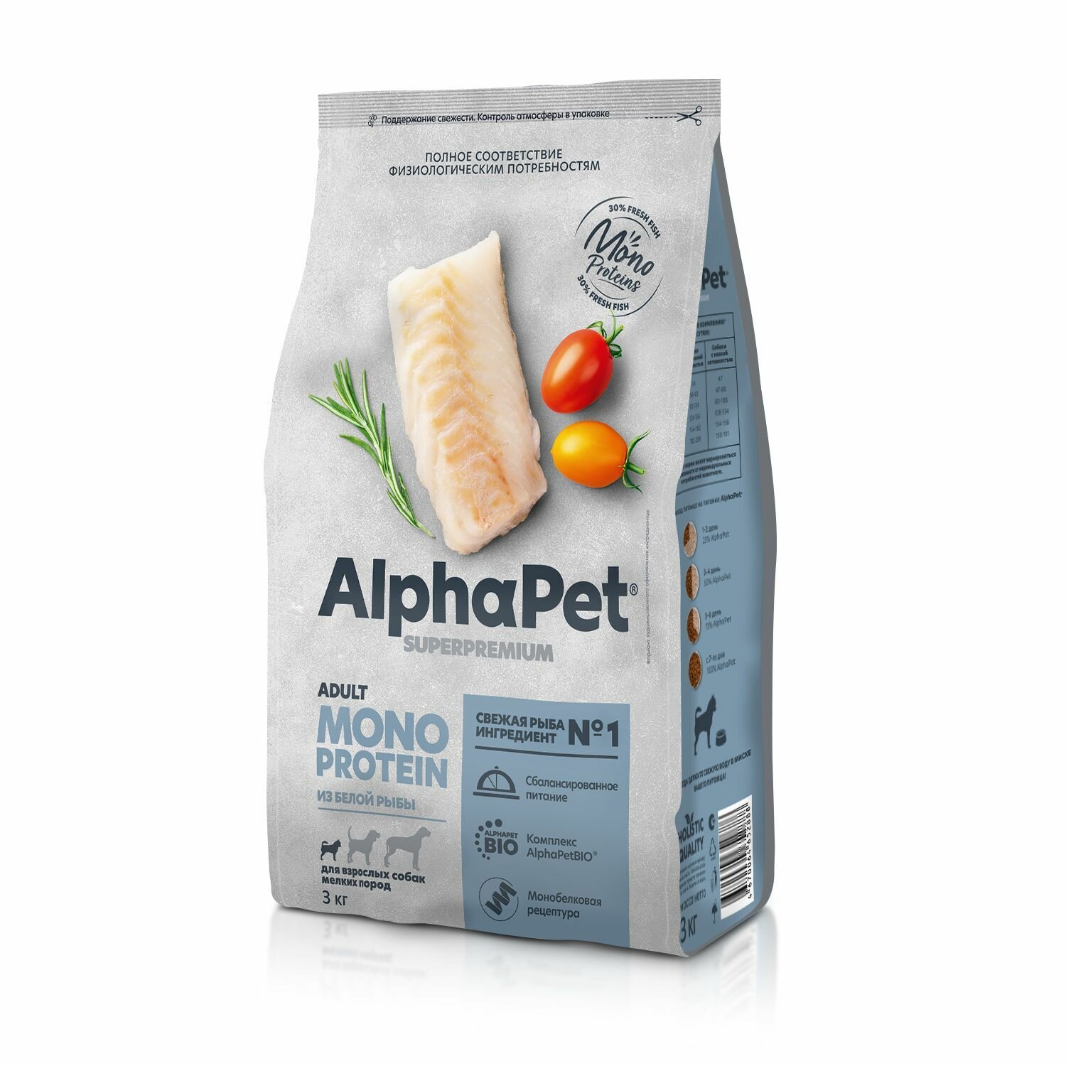 ALPHAPET SUPERPREMIUM MONOPROTEIN 3 кг сухой корм для взрослых собак мелких пород из белой рыбы