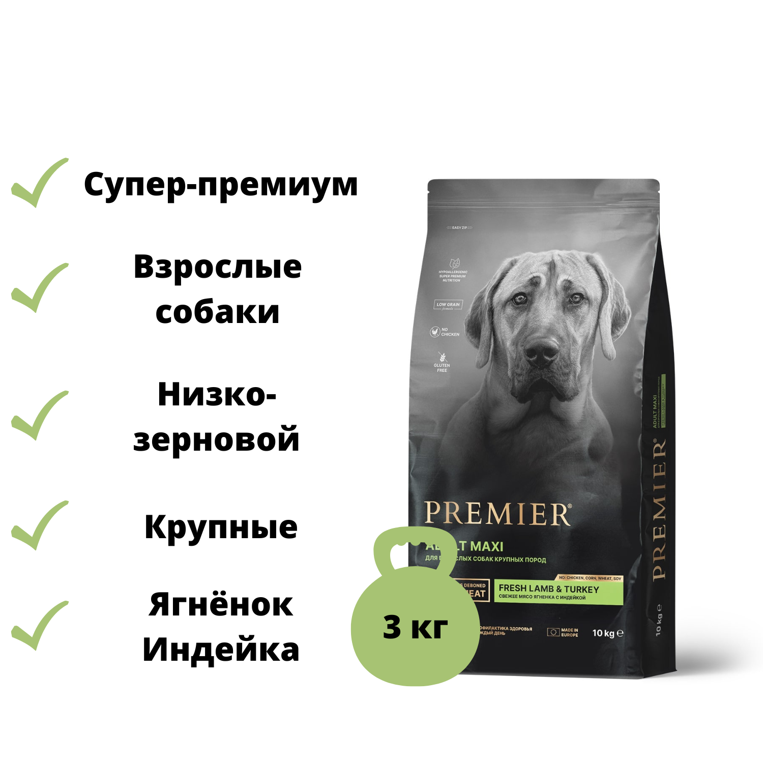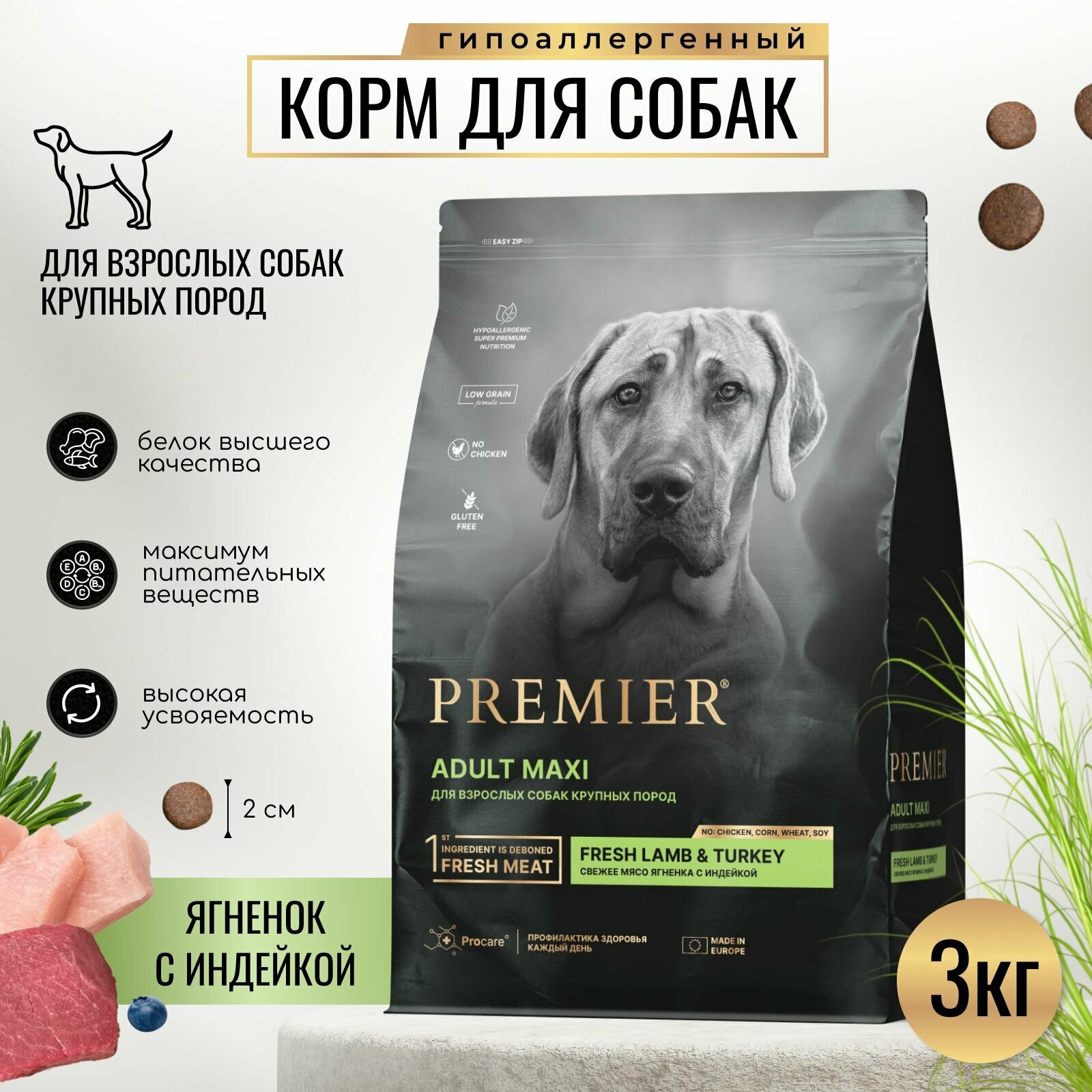 Сухой корм Premier Dog Lamb&Turkey ADULT Maxi Свежее мясо ягненка с индейкой для собак крупных пород, 3 кг