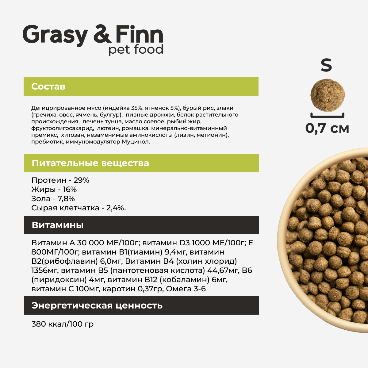 Корм для щенков сухой мелких и средних пород для стерилизованных Grasy & Finn, Индейка 0,8 кг
