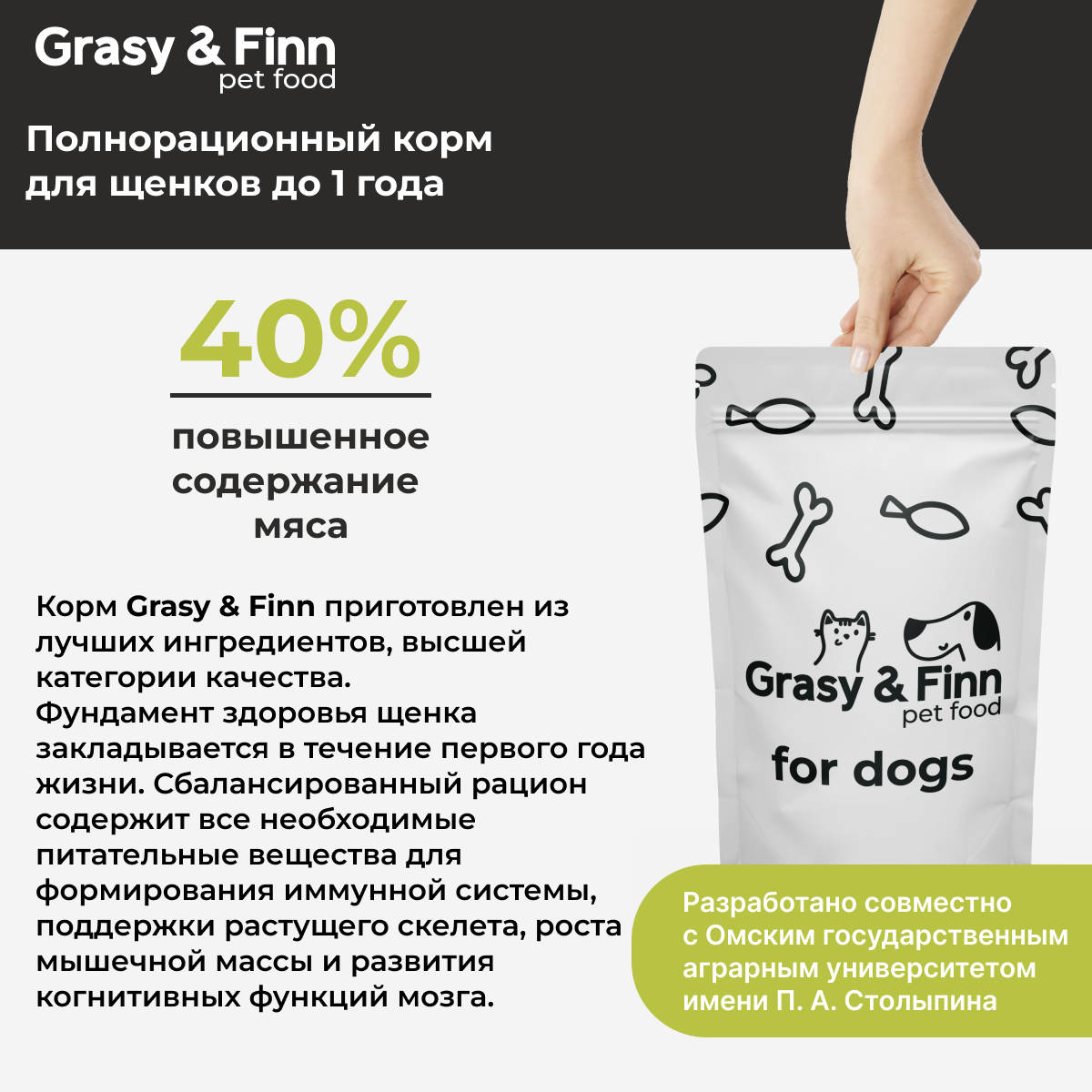 Корм сухой для щенков Grasy & Finn, Индейка 800 гр