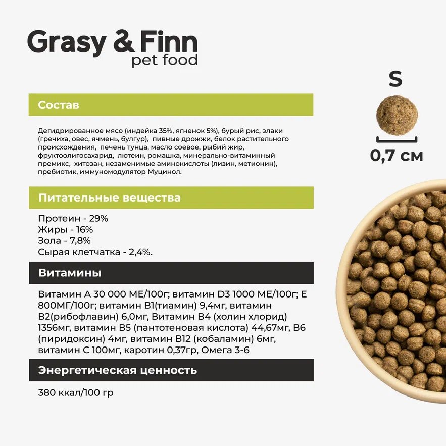 Корм для щенков сухой мелких и средних пород для стерилизованных Grasy & Finn, Индейка 2,5 кг