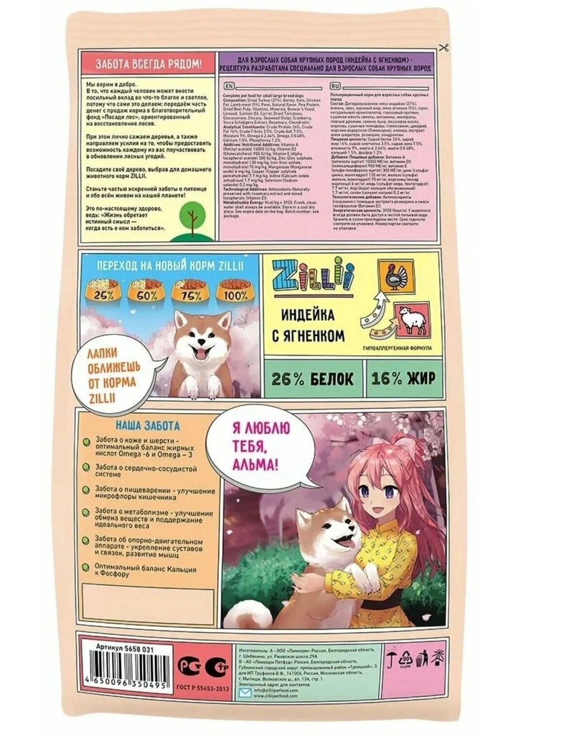 ZILLII (Зилли) Adult Dog Large Breed Сухой корм для взрослых собак крупных пород 15кг Индейка с Ягнёнком