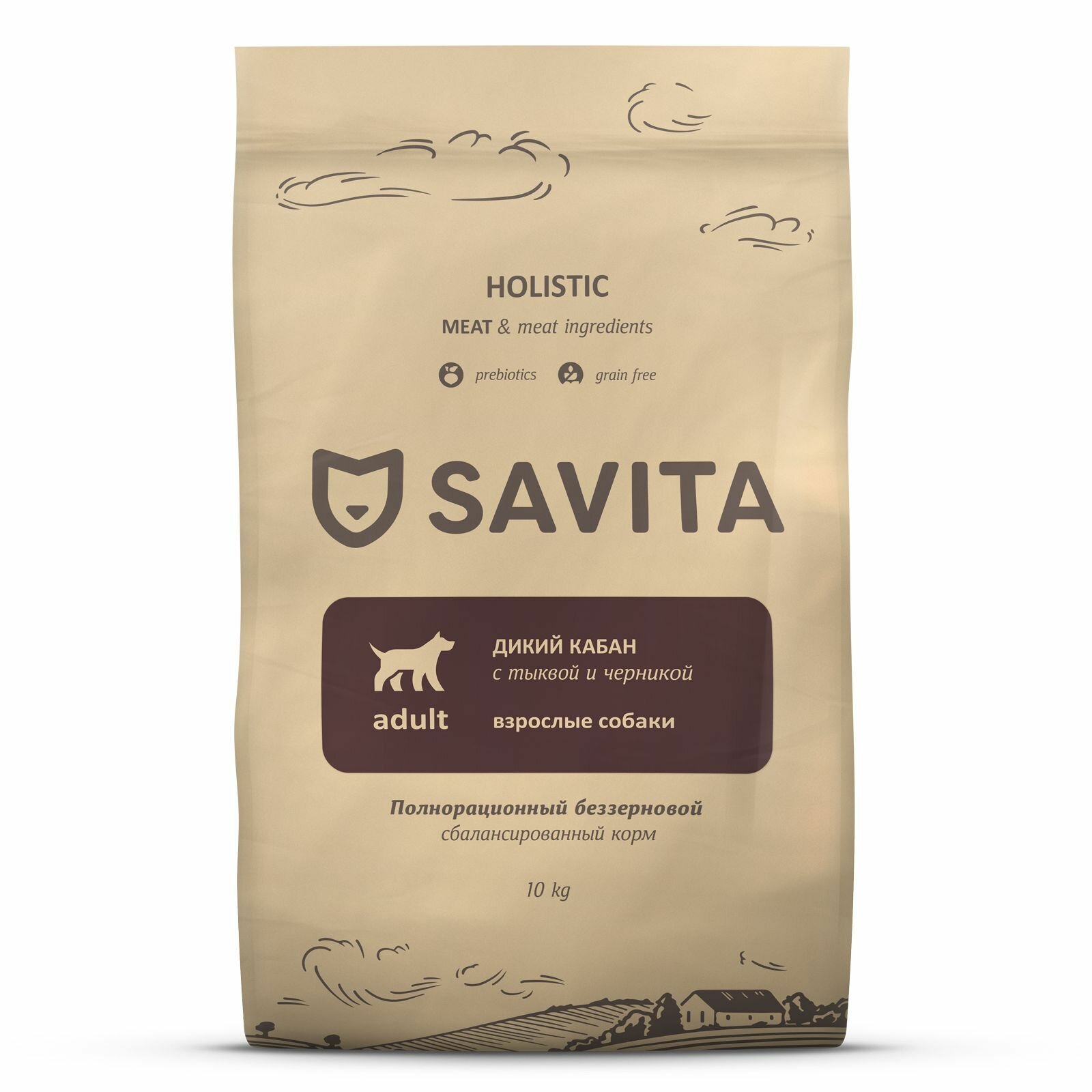 SAVITA беззерновой сухой корм для взрослых собак с мясом дикого кабана, 10кг