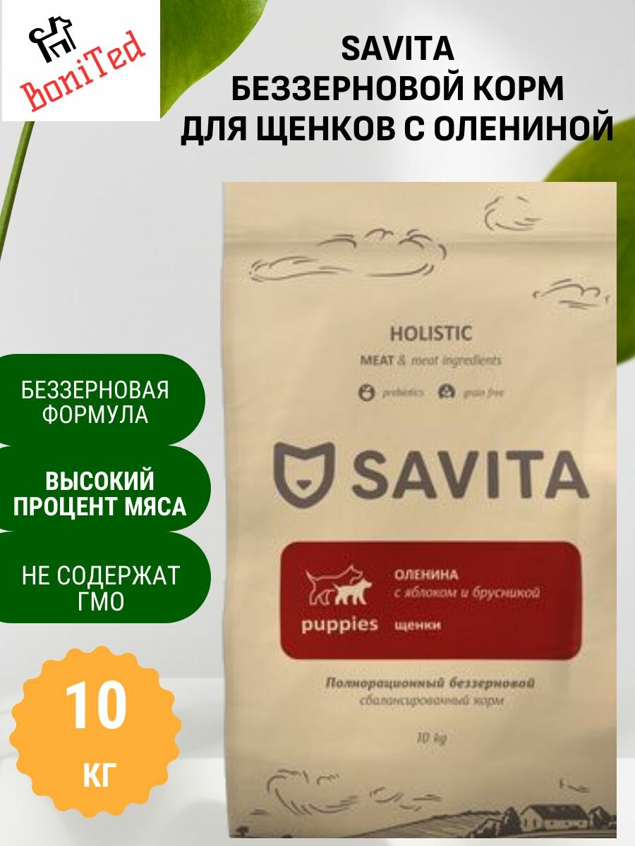 СохранитьСухой корм SAVITA беззерновой корм для щенков с олениной, с яблоком и брусникой, 10 кг интересное: