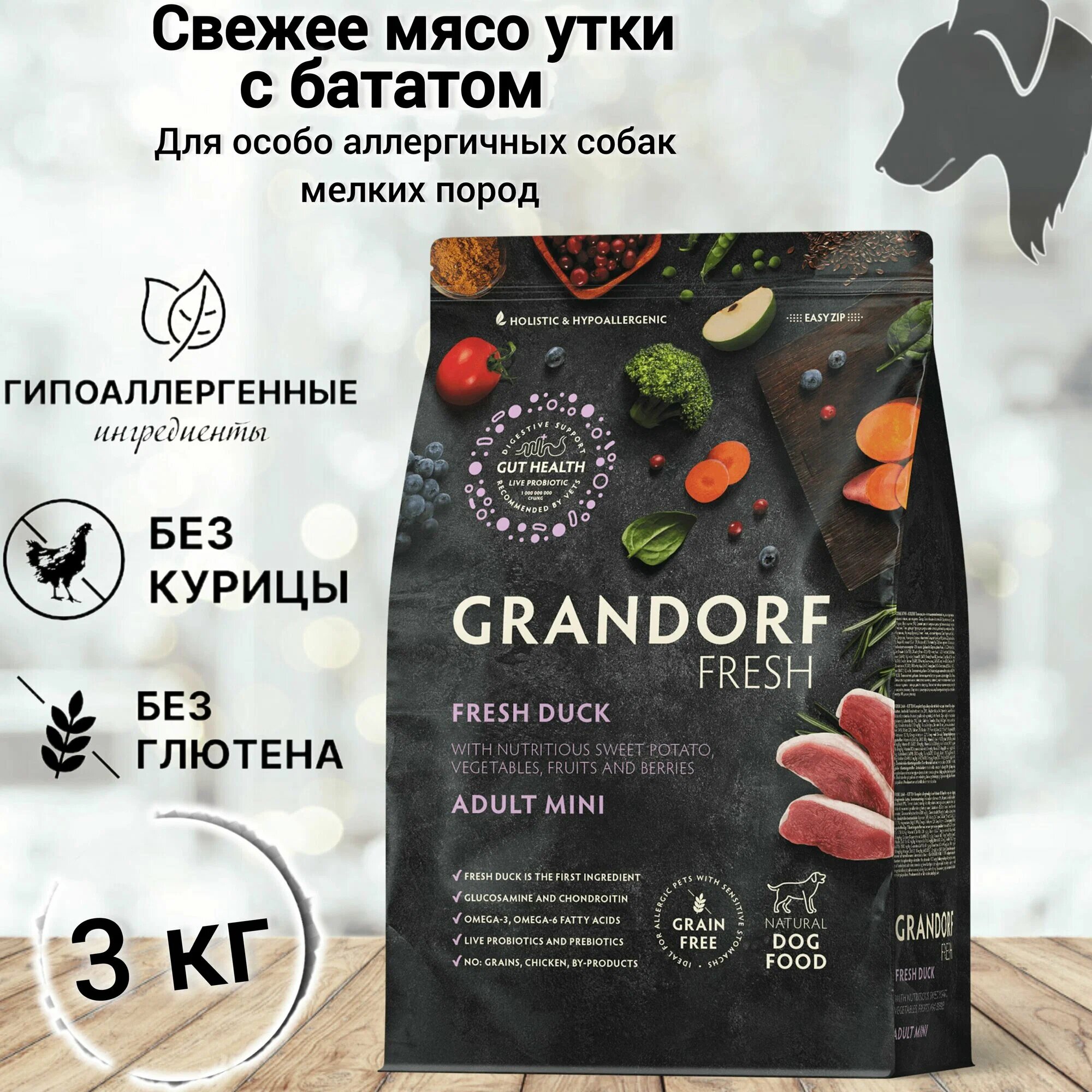 Сухой корм для собак мелких пород 3 кг Grandorf Fresh Dog Adult MINI Duck & Sweet Potato: Утка, Индейка и Батат, беззерновой, холистик, гипоаллергенный