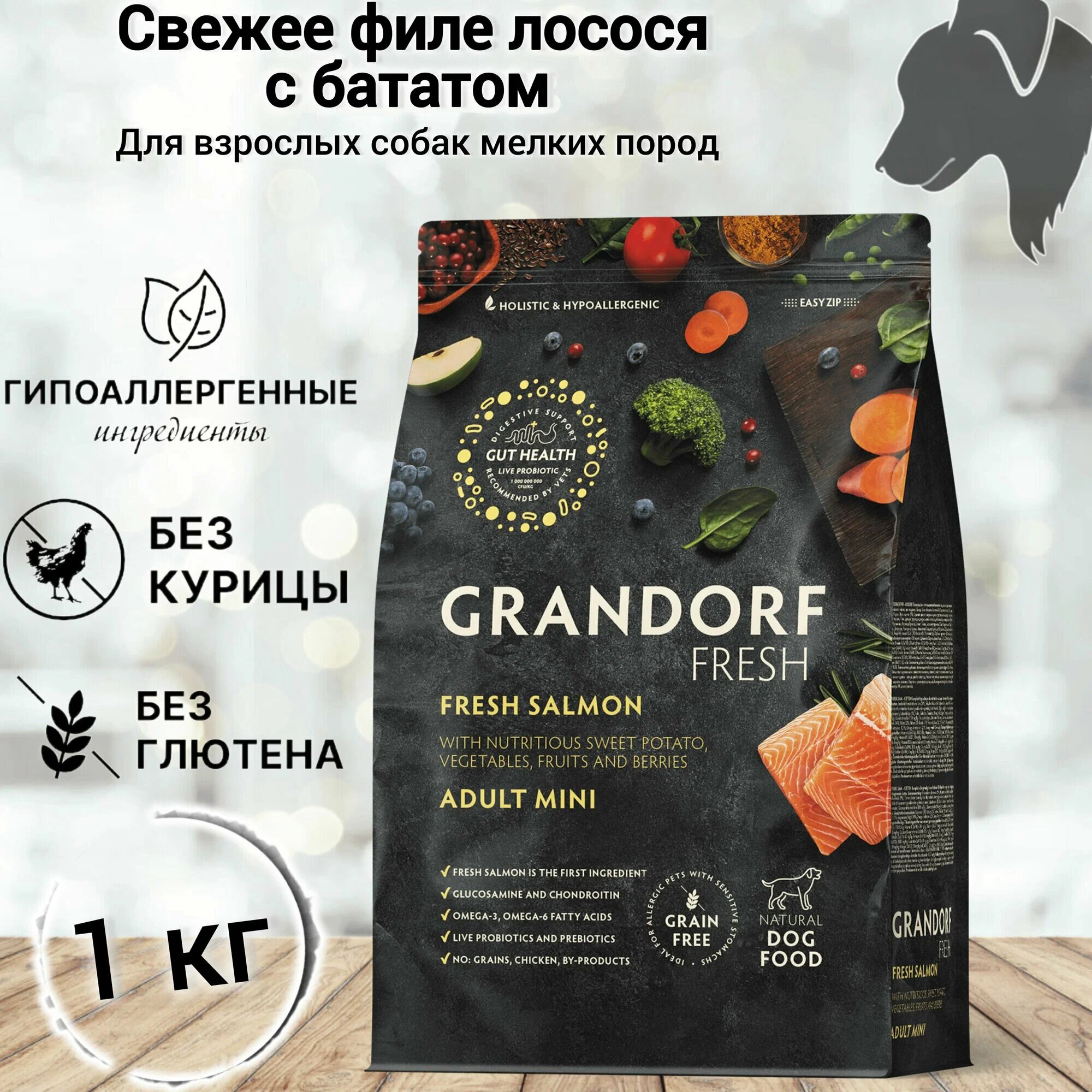 GRANDORF Fresh Dog Adult MED&MAXI Salmon&Sweet Potato (Свежее филе лосося с бататом для собак средних и крупных пород) (1 кг)