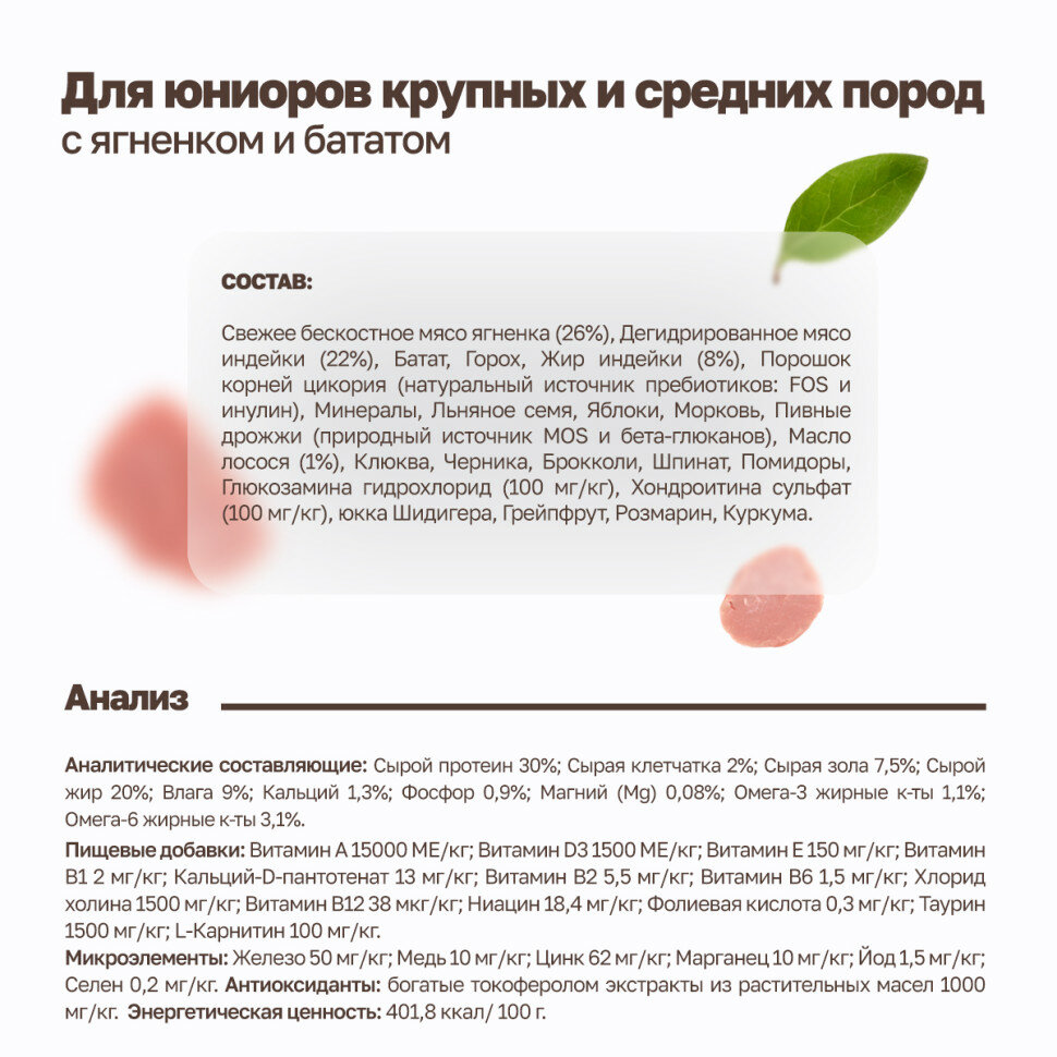 Сухой беззерновой корм Grandorf FRESH свежее мясо ягненка с бататом для юниоров, с живыми пробиотиками. Для средних и крупных пород с 4 месяцев, беременных и кормящих собак 1 кг