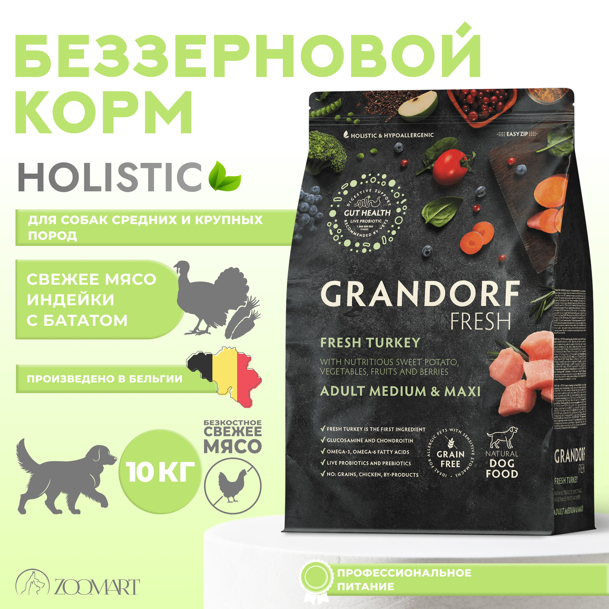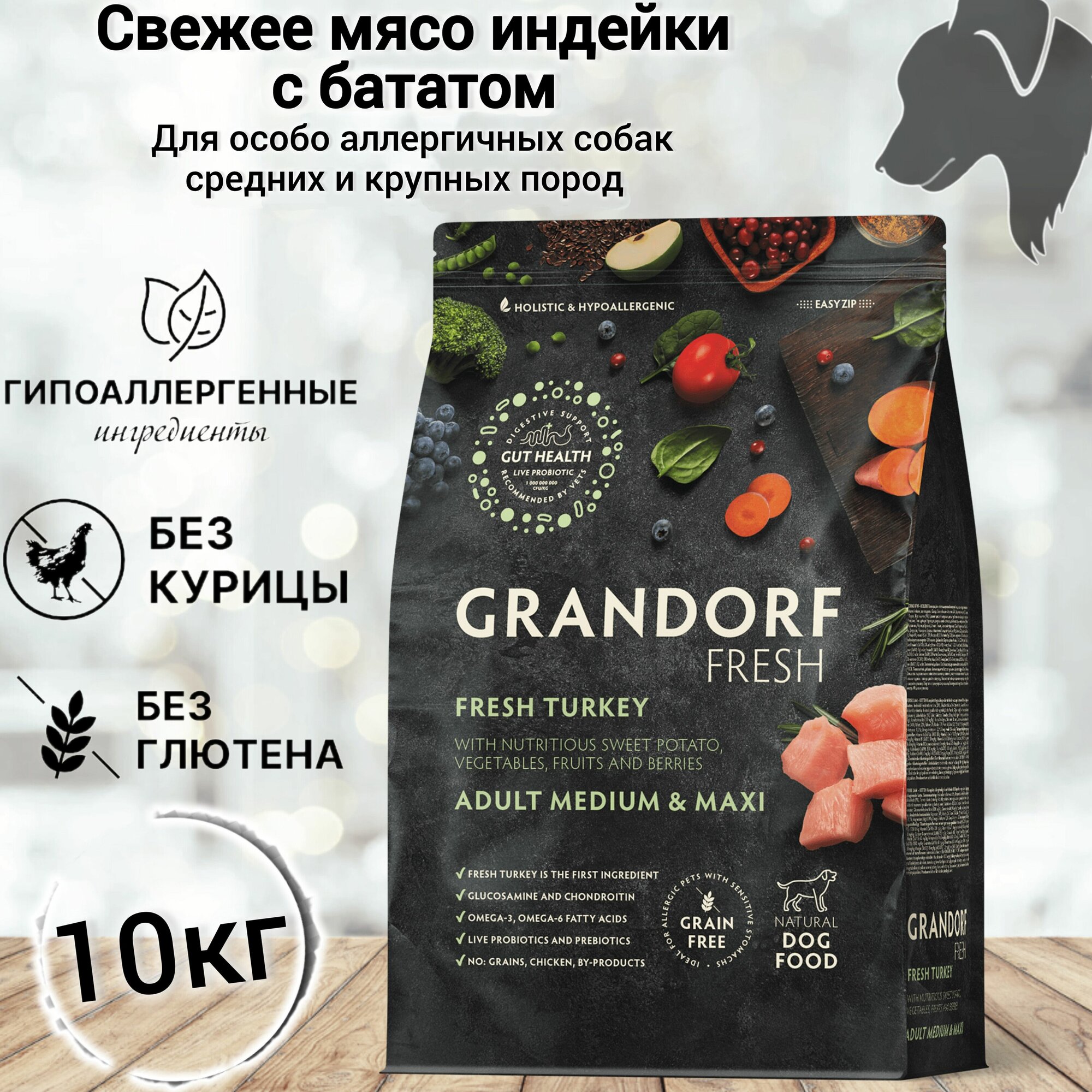Сухой корм для собак Grandorf FRESH Dog Adult Med&Maxi Turkey&Sweet Potato (Свежее мясо индейки с бататом для собак средних и крупных пород) 10 кг