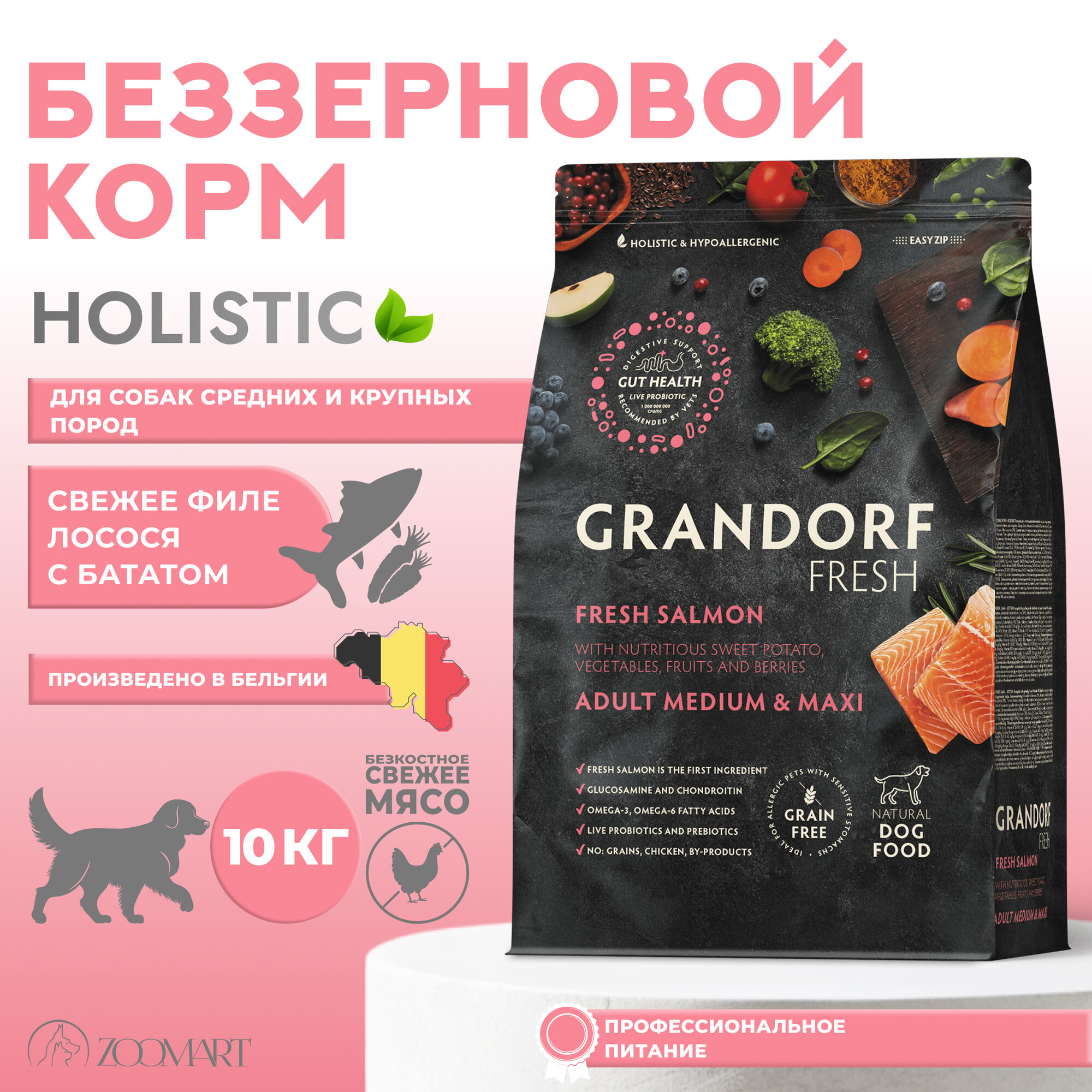 Сухой корм GRANDORF Fresh, свежее филе лосося с бататом для собак средних и крупных пород (10 кг)