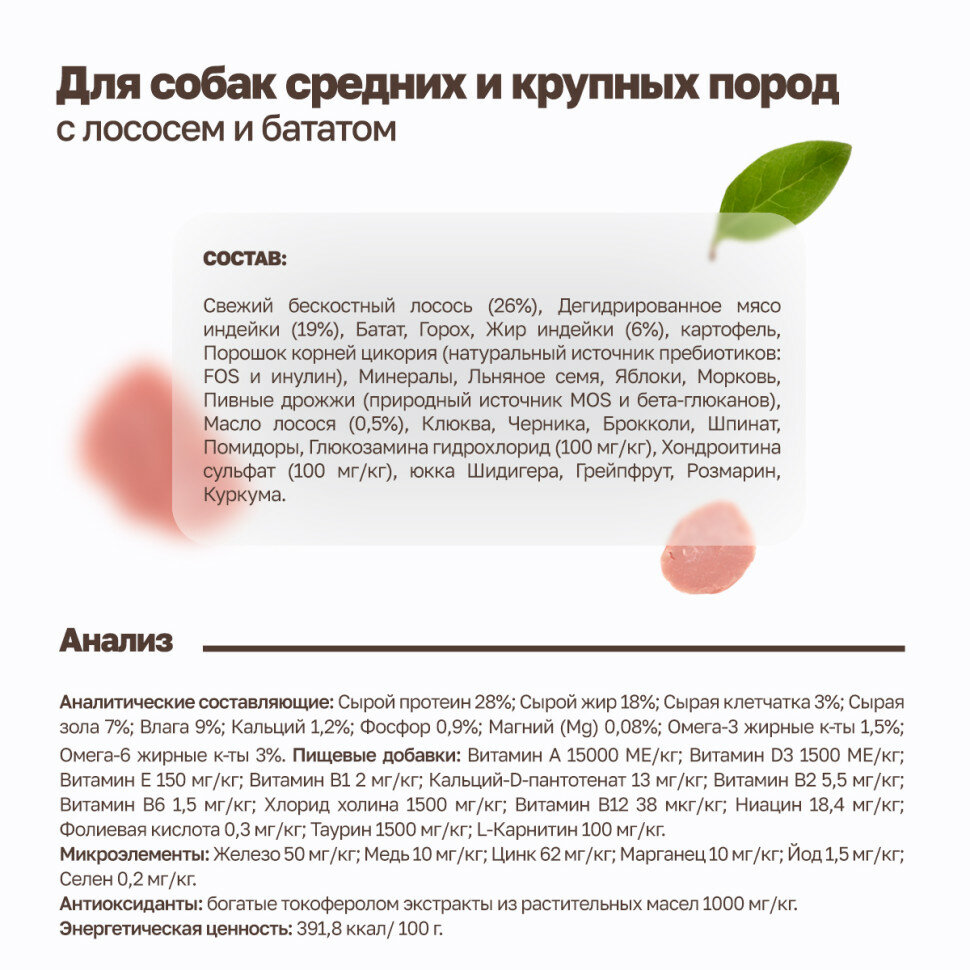 Сухой корм GRANDORF Fresh, свежее филе лосося с бататом для собак средних и крупных пород (10 кг)