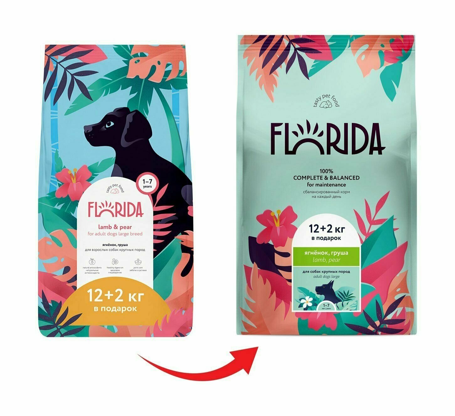 FLORIDA для взрослых собак крупных пород с ягненком и грушей (12 + 2 кг)