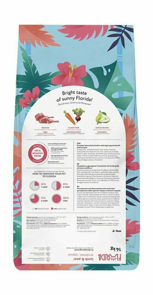 Ниже Вы можете прочитать отзывы на FLORIDA сухой корм для взрослых собак крупных пород с ягненком и грушей (14 кг), ознакомится с подробными характеристиками, посмотреть интересные обзоры и фотографии на FLORIDA сухой корм для взрослых собак крупных пород с ягненком и грушей (14 кг).