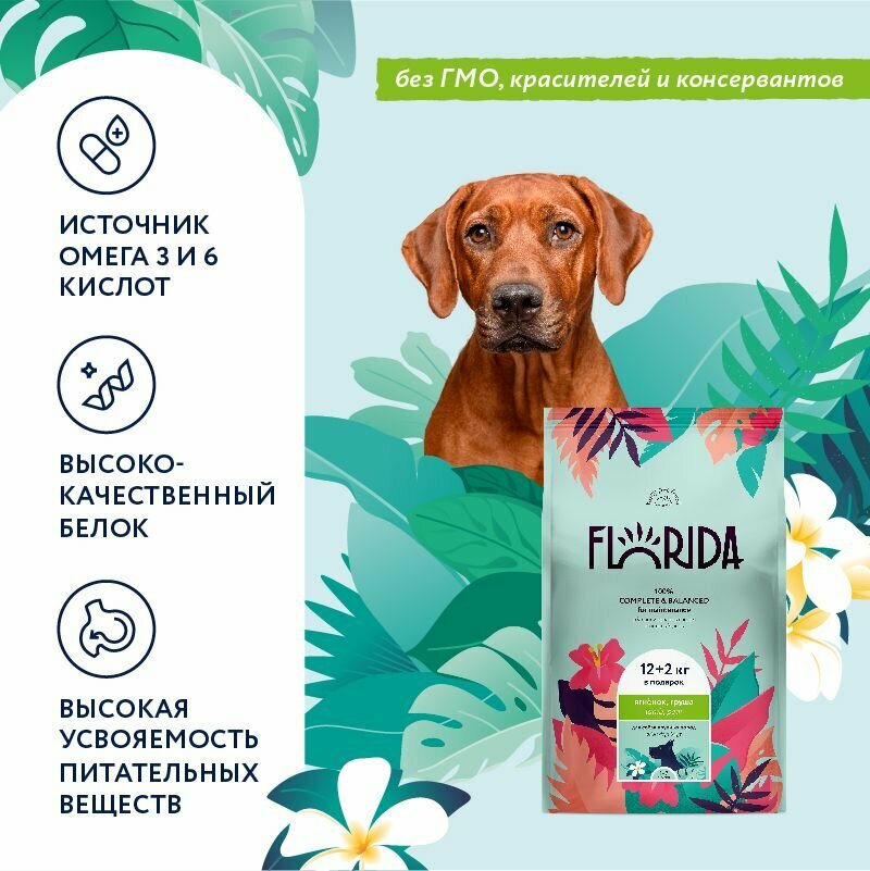 FLORIDA для взрослых собак крупных пород с ягненком и грушей (12 + 2 кг)