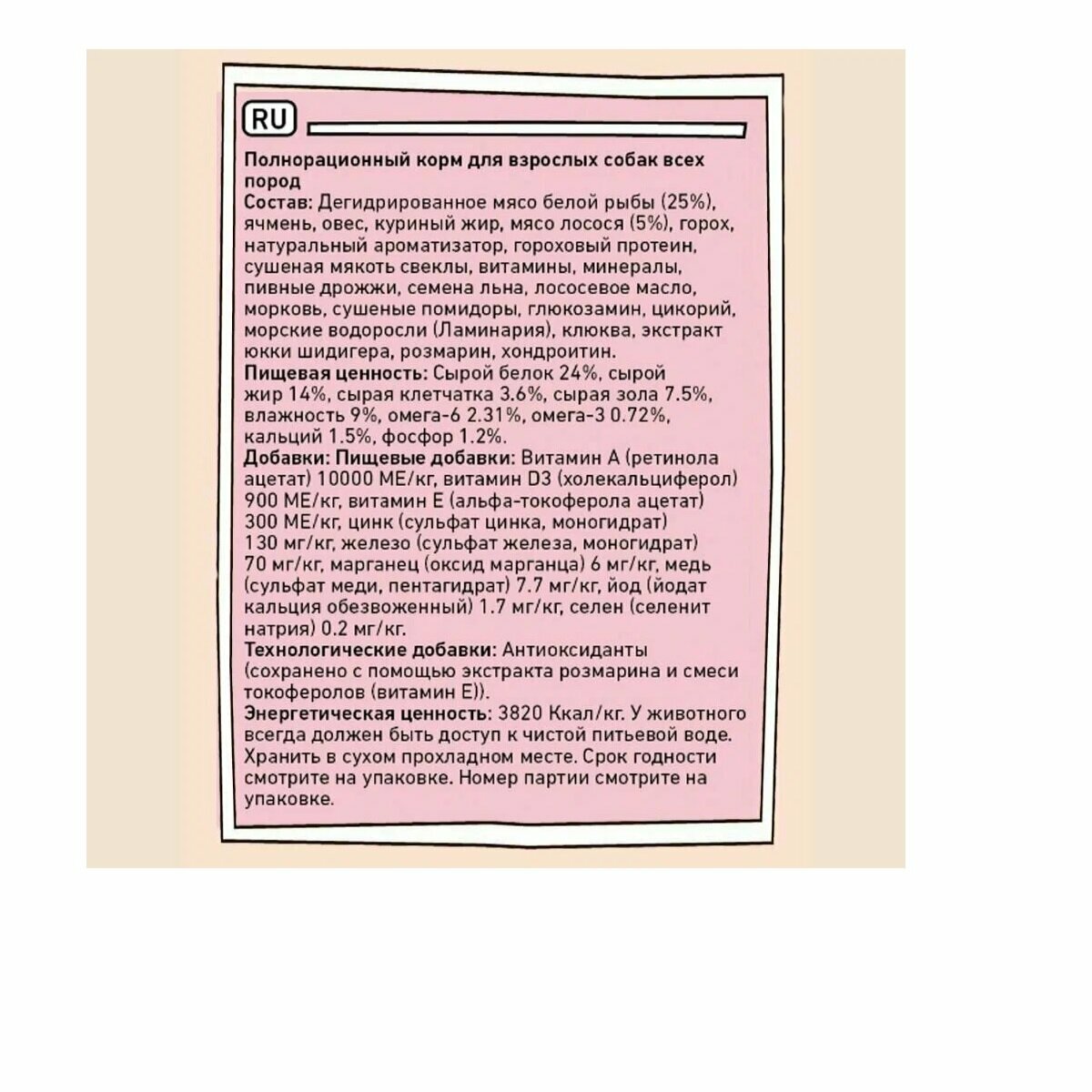 | Дозировка | норма кормления указана на упаковке |