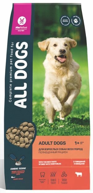 Сухой корм "ALL DOGS" для собак, говядина и овощи, 20 кг