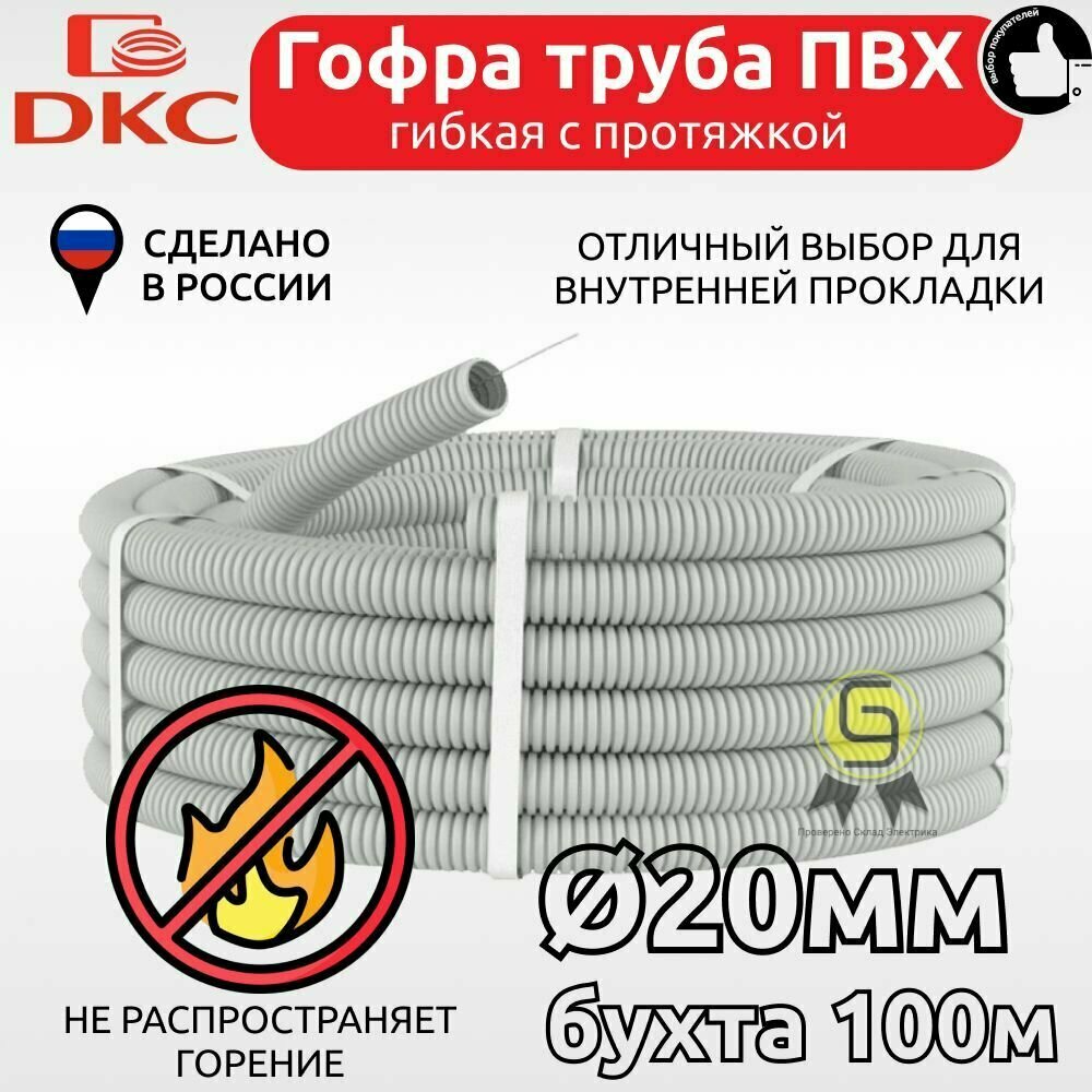 Труба гофрированная Dkc ПВХ d20мм с протяжкой сер. (уп.100м), 91920